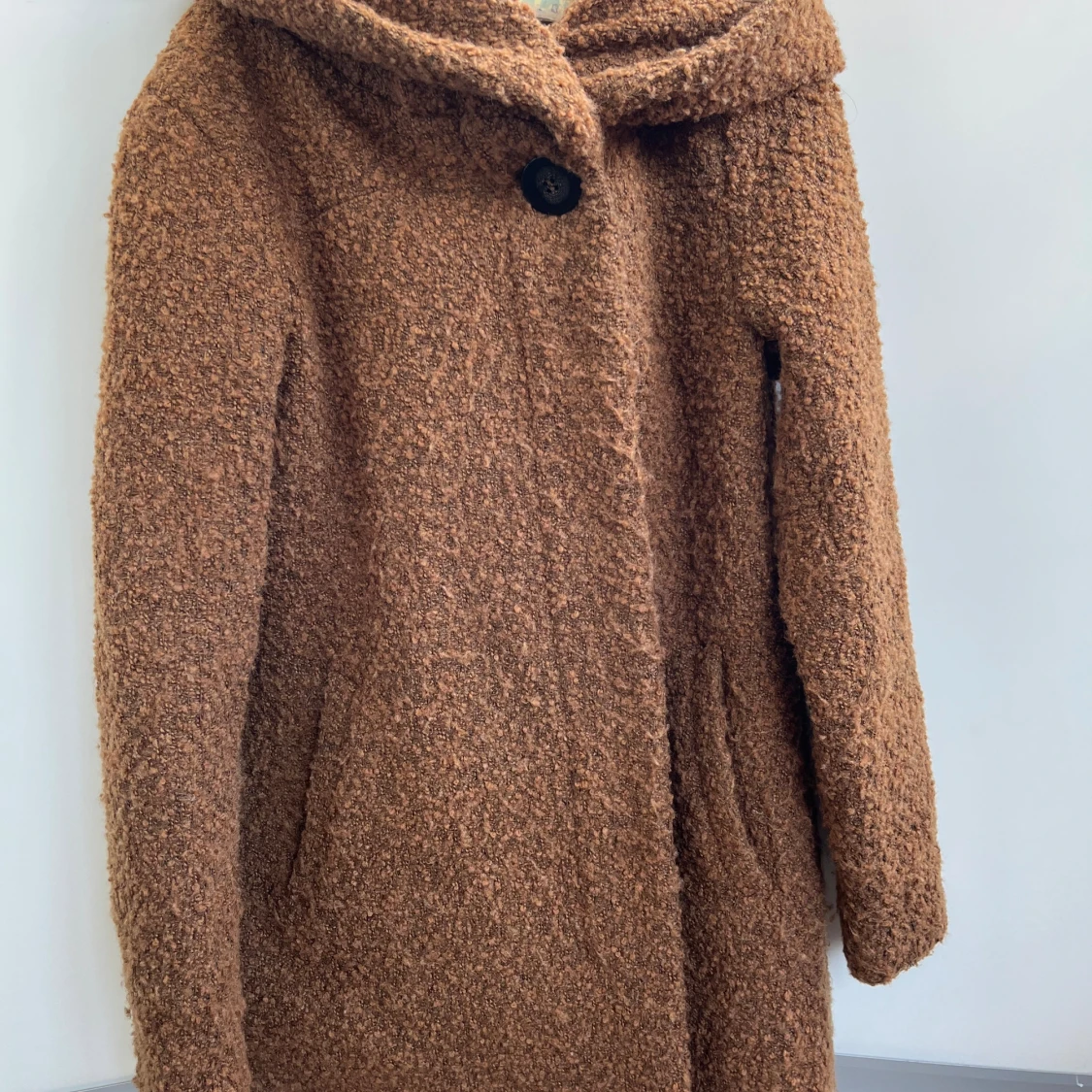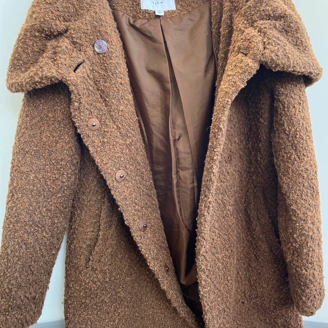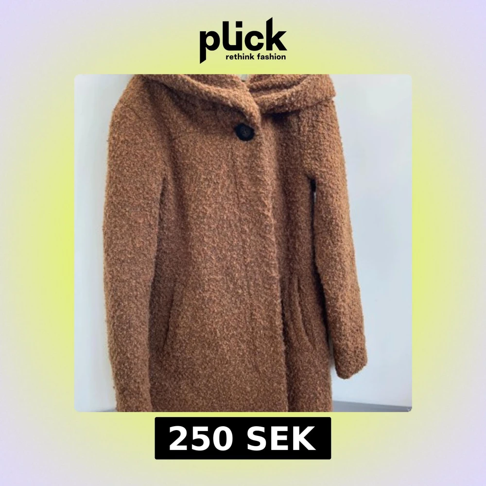 Mysig brun teddyjacka från VILA med stor huva och knäppning framtill. Jackan har en fluffig, teddy-liknande yta och två fickor på sidorna. Perfekt för kyliga dagar när du vill ha både stil och komfort.