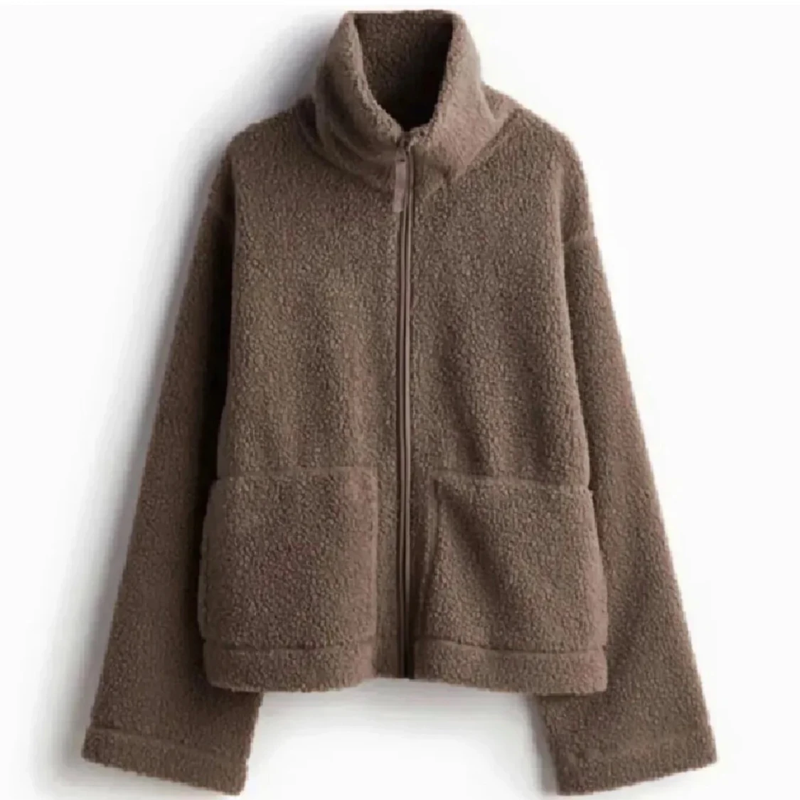 Mysig brun teddyjacka med hög krage och hel dragkedja framtill. Jackan har två stora fickor och är tillverkad i ett fluffigt teddy-material som håller dig varm under kyliga dagar. Perfekt för dig som gillar en avslappnad och trendig stil.