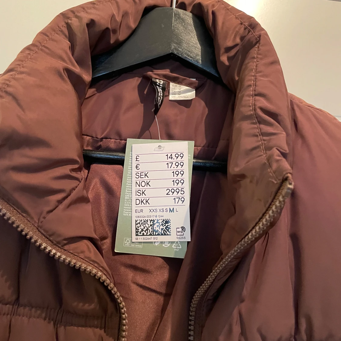 Denna väst från H&M är helt oanvänd med prislapp kvar. Den är rätt kort. Storlek M
