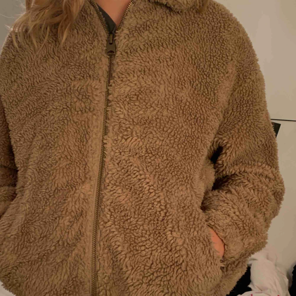 Vit teddyjacka från Helly Hansen - Säljer en fluffig vit teddyjacka från Helly Hansen med marinblå detaljer och bröstficka med dragkedja. Jackan har huva, hel dragkedja framtill och två sidofickor. Perfekt för kalla dagar och riktigt mysig att bära.