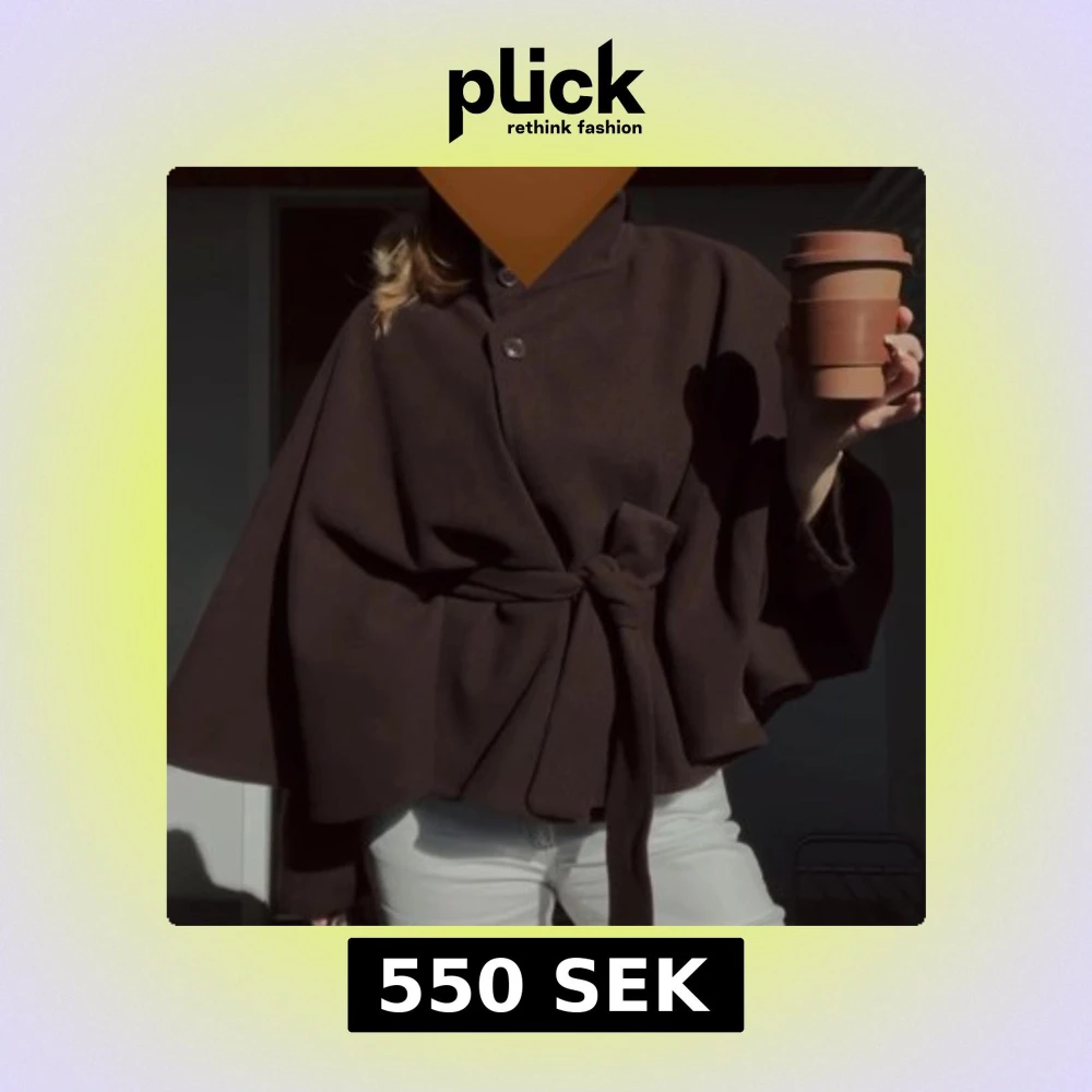 Säljer en brun kappa med högt krage, vida ärmar och knytbälte i midjan. Jackan har en stilren look med knappar framtill och är perfekt för dig som gillar minimalistisk design och vill ha något som sticker ut. Passar dig som gillar att klä dig trendigt och bekvämt. Knappt använd💞