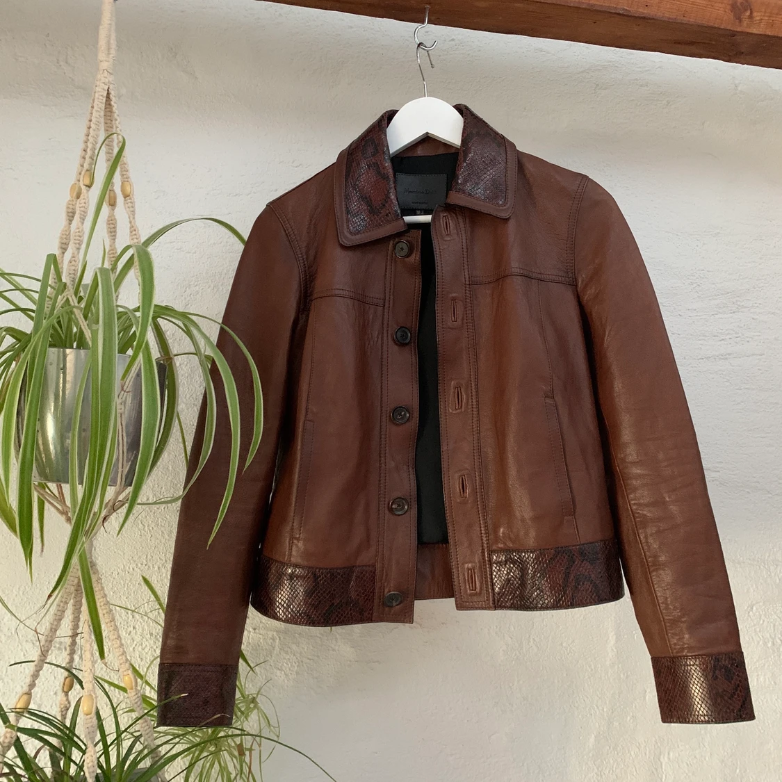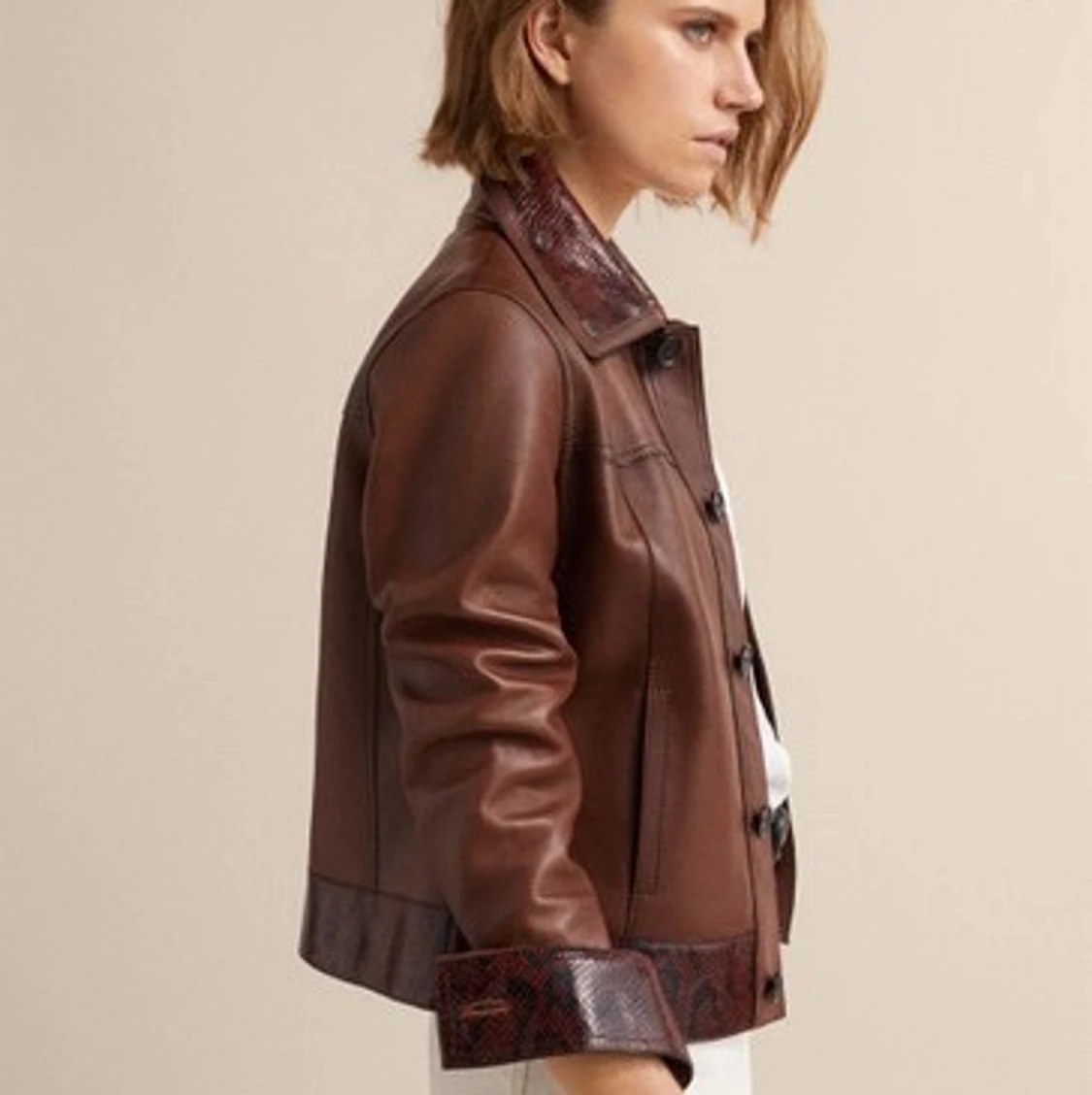 ❤️🔥INTRESSEKOLL❤️🔥Brun skinnjacka i äkta läder med omrskinnsimitation på krage och ärmslut. En limited edition från Massimo Dutti i strl S. Använd vid ett tillfälle dvs så gott som ny. Nypris: 4000kr