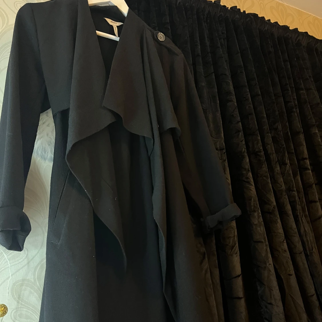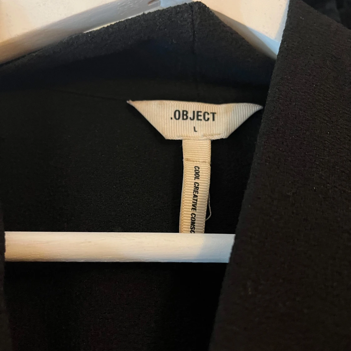Elegant svart kappa från Object med långa ärmar och en stilren design. Perfekt för att ge en sofistikerad touch till din outfit. Kappan har en klassisk krage och en knappdetalj vid axeln.