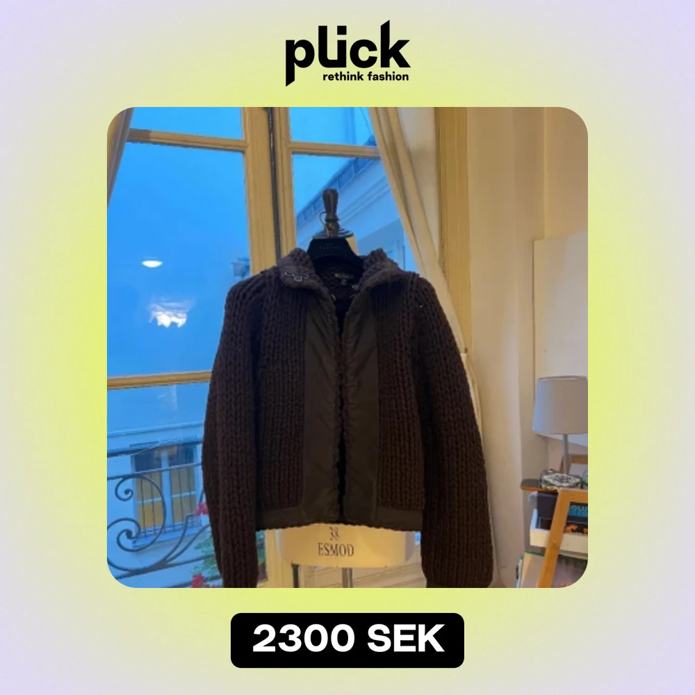 Köpt second hand i Paris. Jackan är i super bra skick utom de 2 hakarna som har ramlat av (se bild)