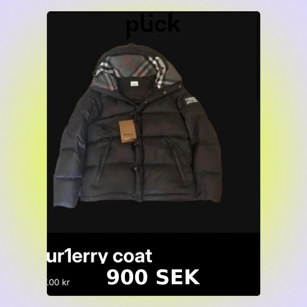 Säljer en svart pufferjacka från Burberry med klassiskt rutigt foder i huvan. Jackan har dragkedja och knappar framtill samt två stora fickor. Perfekt för kalla dagar och har en cool, urban vibe.