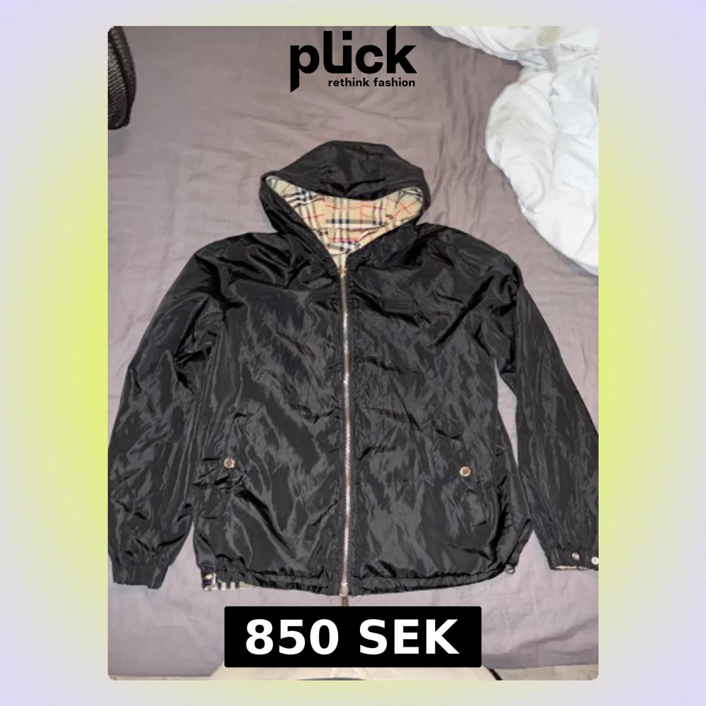 Burberry jacka extremt bra skick man kan vända den ut och in stick ut mycket om man har den randiga siden storlek m 9/10 skick använd men super bra skick vid frågor bara och att höra av sig