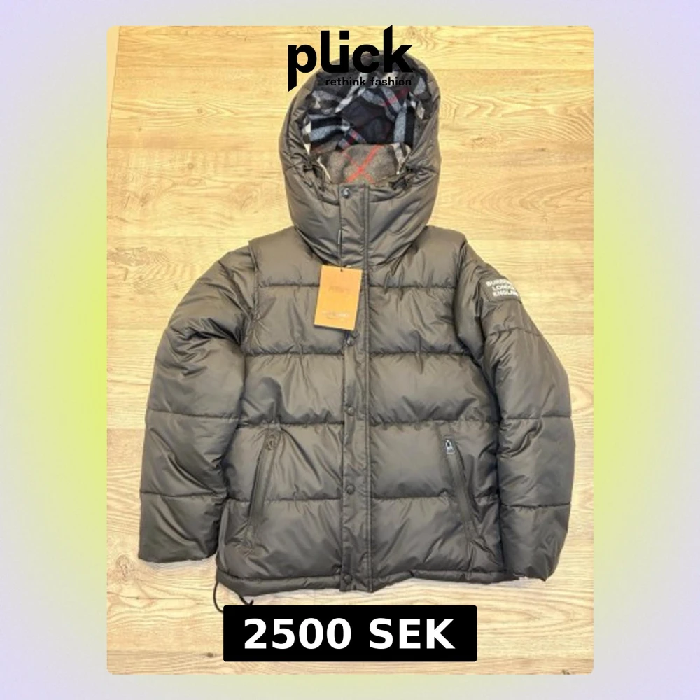 Snygg svart pufferjacka från Burberry med klassiskt rutigt foder i huvan och logga på ärmen. Jackan har dragkedja, två fickor med dragkedja och quiltad design. Perfekt för kalla dagar och riktigt trendig look. Pris kan diskuteras❗️