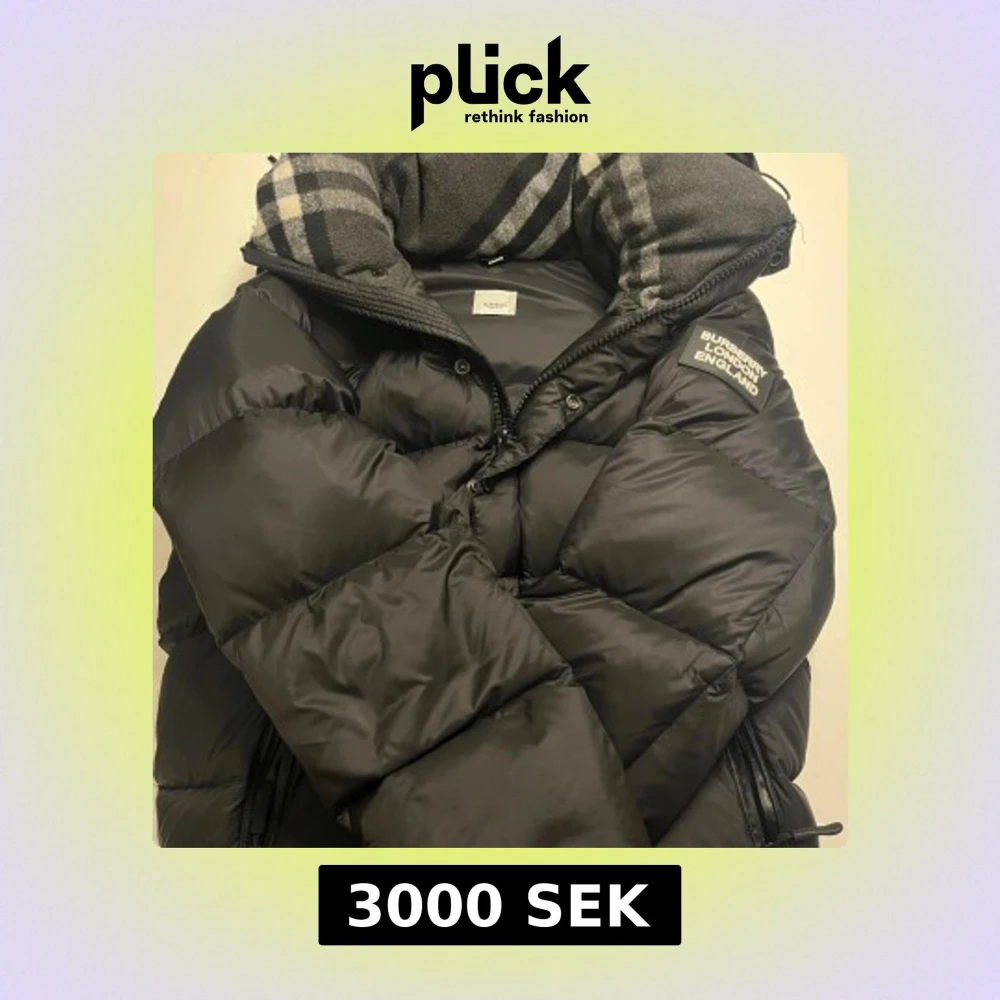 Svart pufferjacka från Burberry med stickad luva och logotyp på axeln. Jackan har dragkedja och knappar framtill, två sidofickor med dragkedja och quiltad design. Materialet är polyester och dun, perfekt för kalla dagar. Snygg och stilren look med klassisk Burberry-vibe. I storlek M och kan även passa S