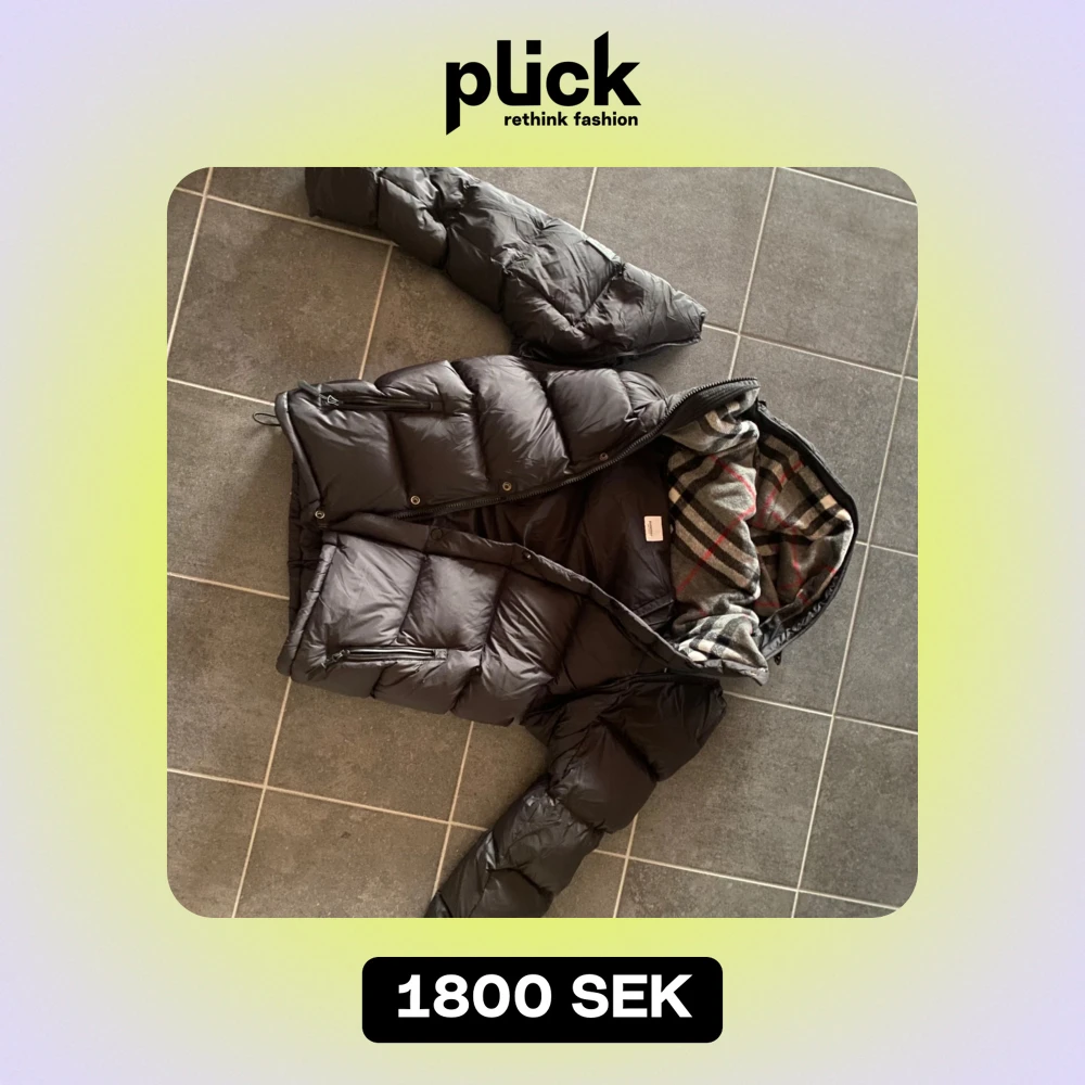 Säljer en snygg svart dunjacka från Burberry i mycket bra skick. Den har en quiltad design och en dragkedja framtill. Insidan har ett klassiskt rutigt mönster. Perfekt för kalla vinterdagar! 🖤