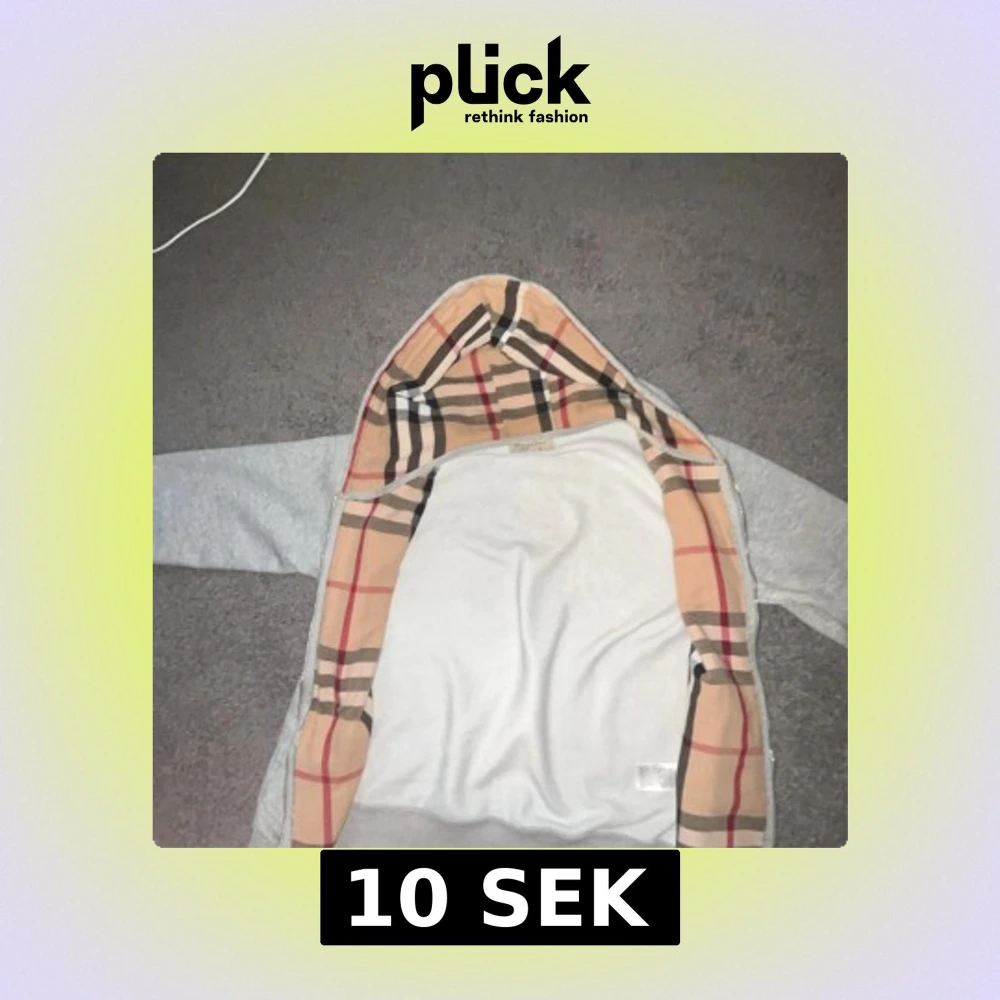 Snygg grå hoodiejacka från Burberry med klassiskt rutigt foder i beige, svart och rött. Jackan har dragkedja, huva och två fickor framtill. Perfekt för dig som vill ha en stilren streetlook med lyxig touch. Dragkedjan funkar inte, men det går och fixa för 50-150kr!