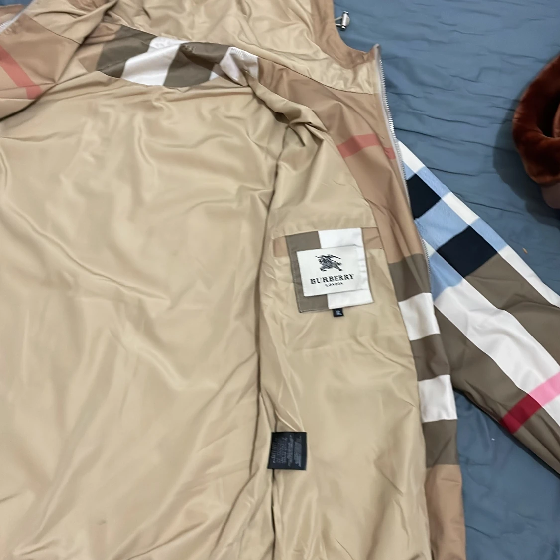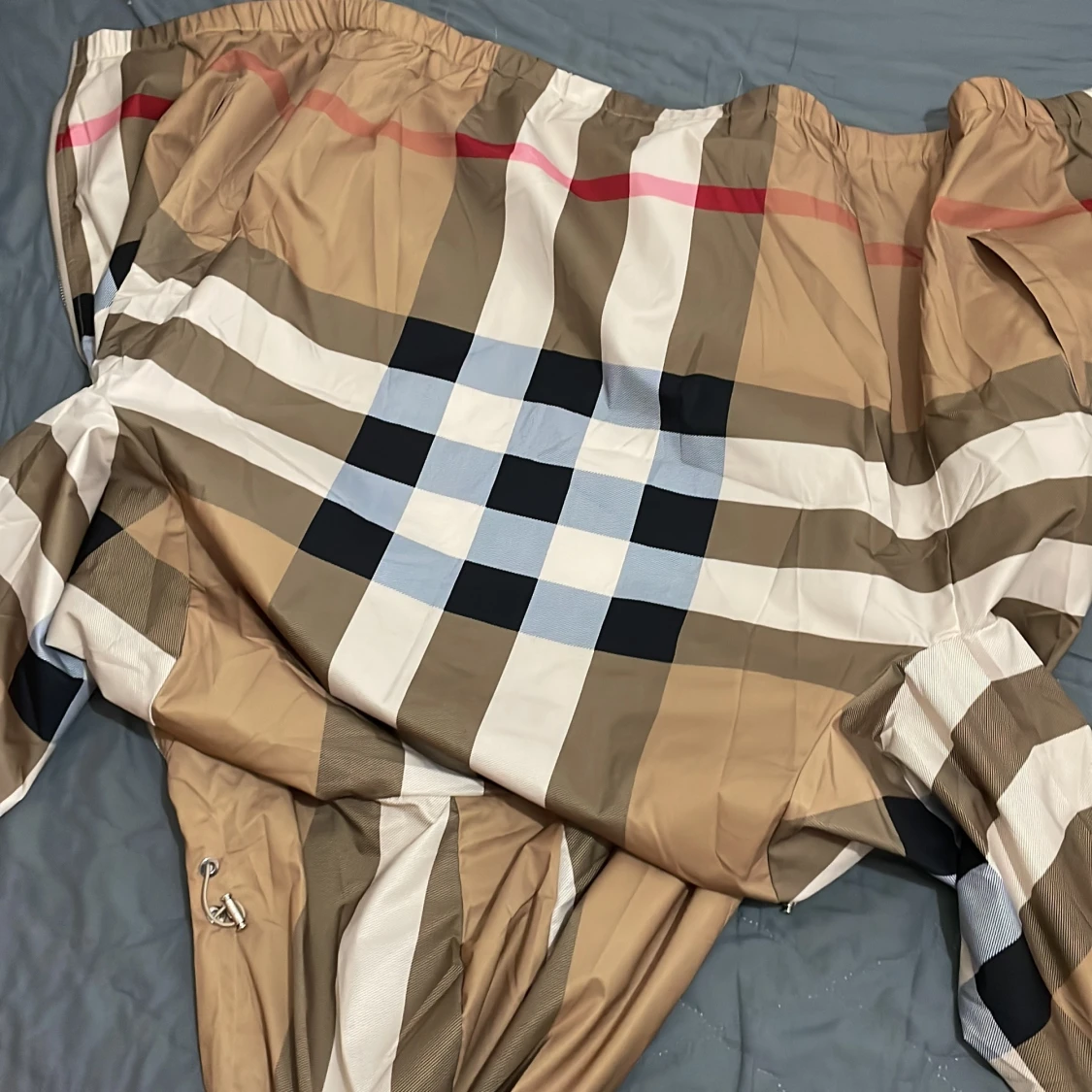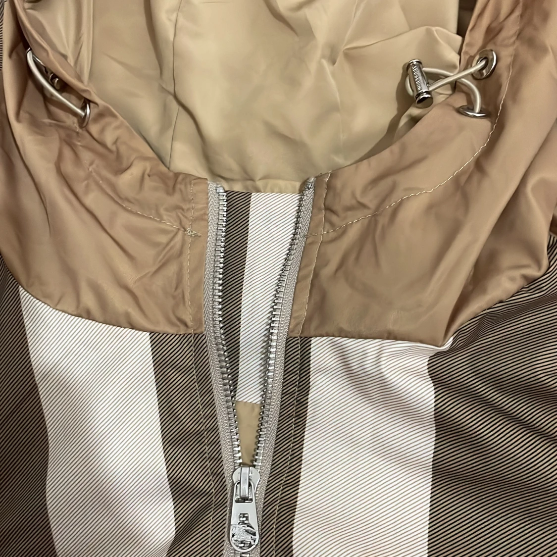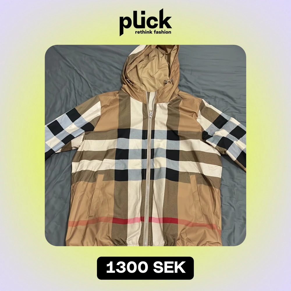 Säljer en snygg rutig jacka från Burberry i beige, svart, vit och röd. Jackan har en dragkedja framtill och en praktisk huva med dragsko. Perfekt för höst och vår! Den är i mycket bra skick och har en klassisk stil som passar till det mesta.