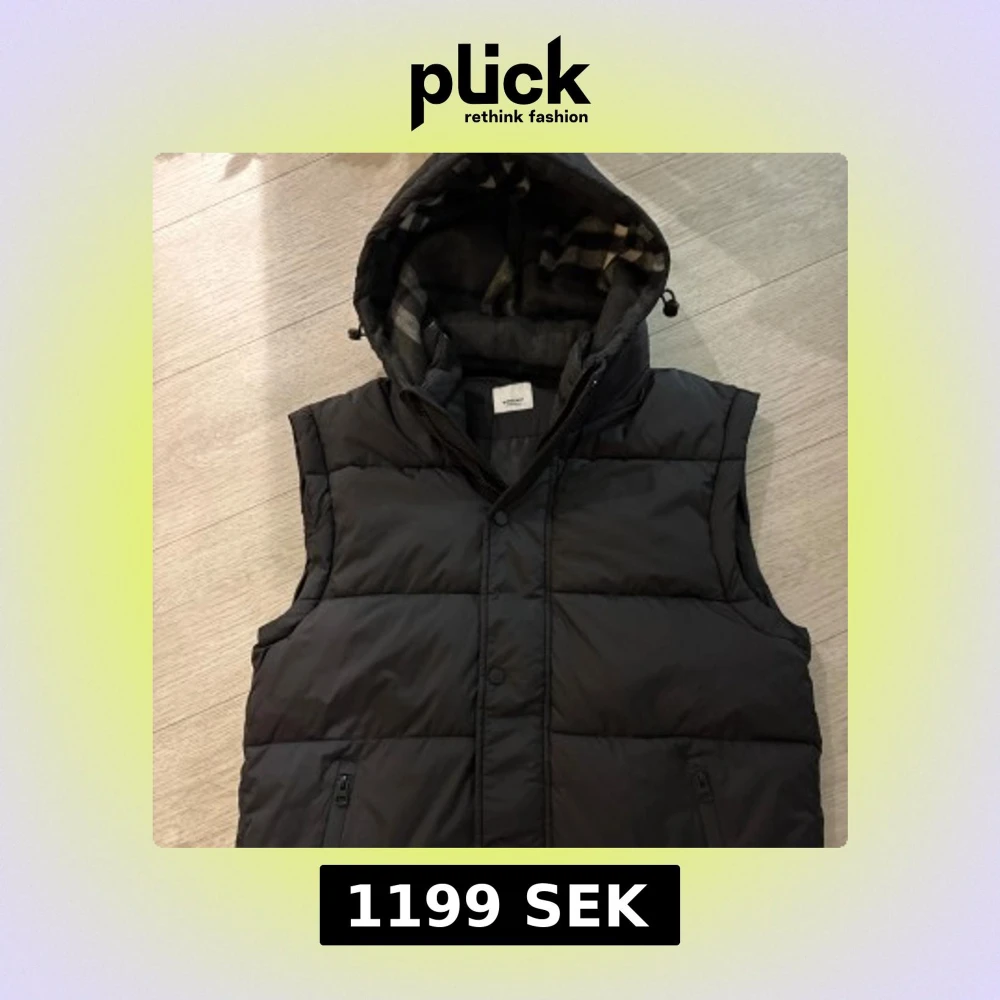 Svart dunväst från Burberry med avtagbar huva och dragkedja framtill. Västen har quiltad design, två fickor med dragkedja och klassisk Burberry-logga på bröstet. Insidan av huvan har ett rutigt mönster i grå toner. Perfekt för lager-på-lager-stil. Storlek M, passar S också men kanske lite för lång för S användare. Mycket Bra skick man kan säga att den är ny. Prislapp finns.