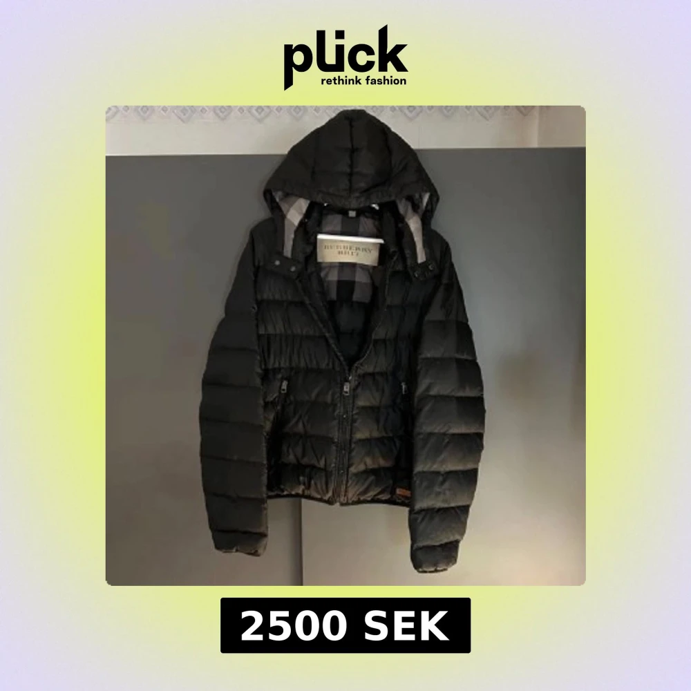Snygg svart dunjacka från Burberry med huva och dragkedja. Jackan har ett quiltat mönster och två fickor med dragkedjor. Perfekt för kyliga dagar. Perfekt för värdet nu och framöver. Storlek M