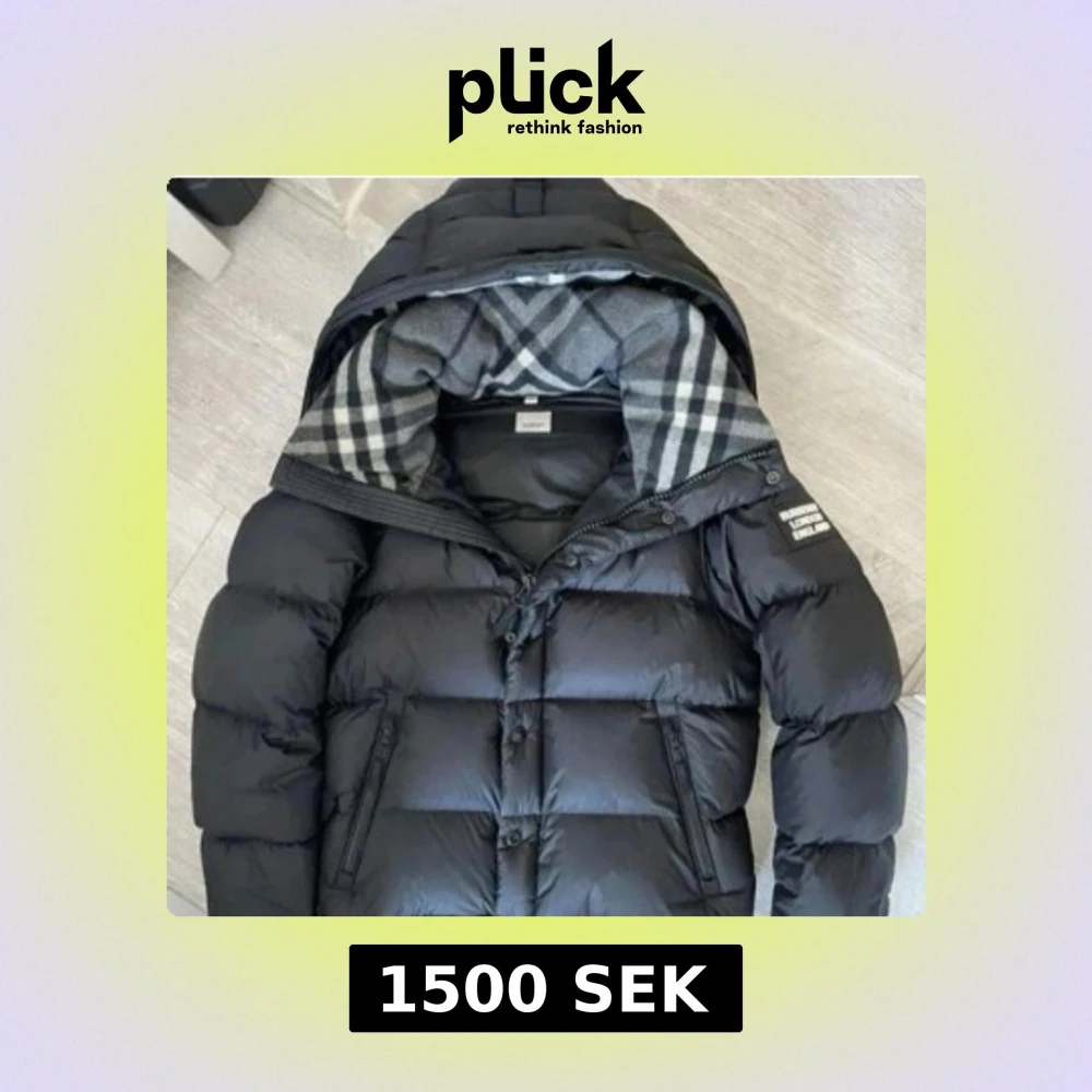 Svart pufferjacka från Burberry med avtagbara ärmar, så den kan bäras som väst. Jackan har klassiskt rutigt foder i huvan, dragkedja och knappar framtill samt två fickor med dragkedja. Märkespatch på ena ärmen. Perfekt för kalla dagar.