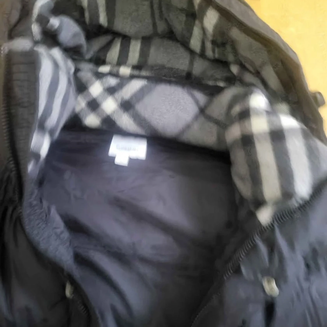 Säljer en svart pufferjacka från Burberry London England med avtagbara ärmar. Jackan har dragkedja, knappar och klassiskt rutigt foder i huvan. Perfekt för kalla dagar och riktigt snygg streetstil.