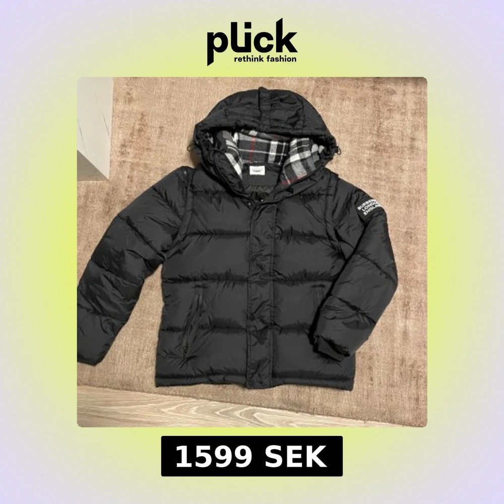 Svart pufferjacka från Burberry med avtagbara ärmar så du kan bära den som väst. Jackan har huva med snörning och ett rutigt foder i grått, vitt och rött. Logotypen 'BURBERRY LONDON ENGLAND' är tryckt på vänster ärm. Dragkedja och fickor framtill. Stl S jätte bra skick och tags medföljer.