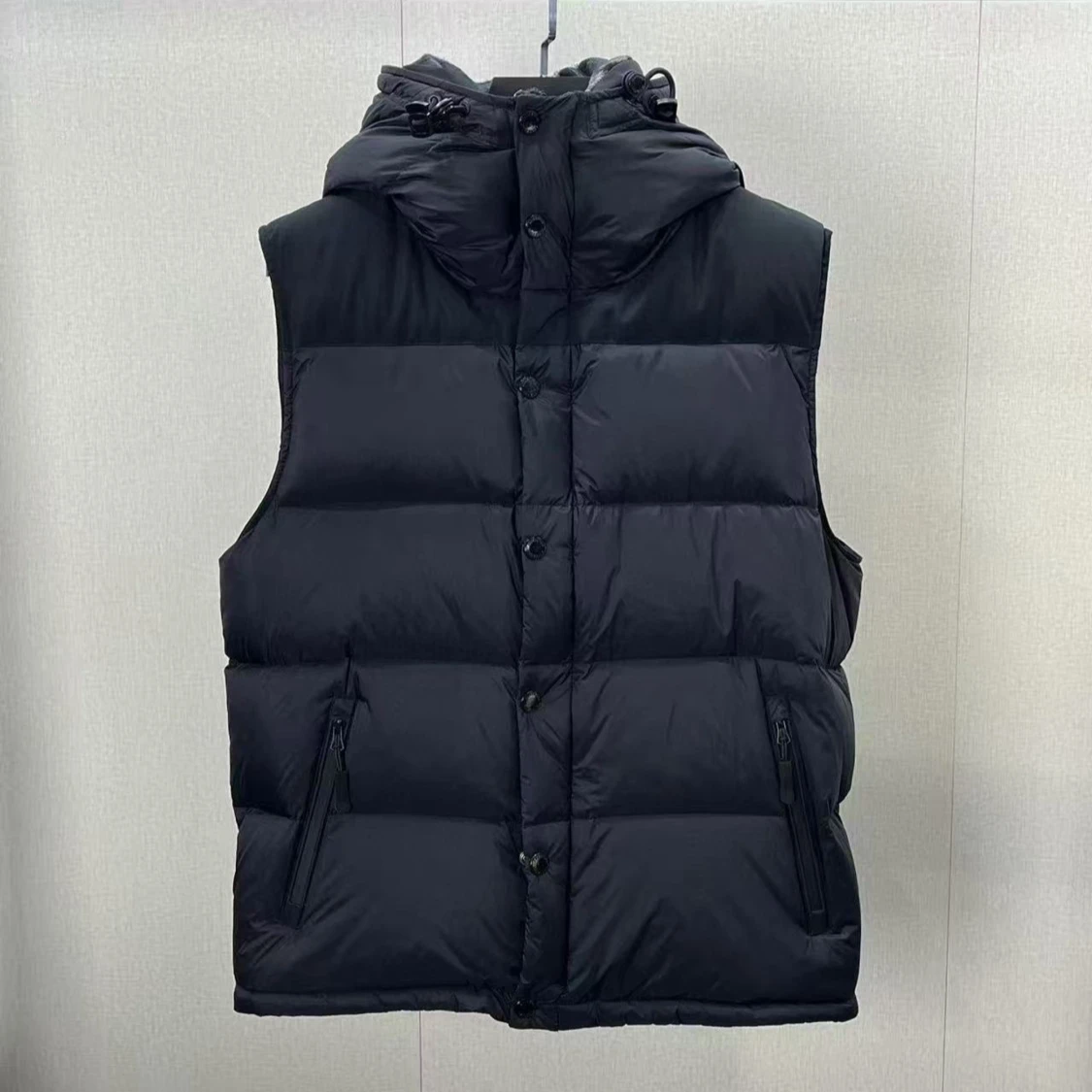 Svart burberry jacka med avtagbara ärmar så du kan bära den som väst. Jackan har huva med rutigt foder, dragkedja och knappar framtill samt två sidofickor med dragkedja. Perfekt för kalla dagar och har en clean, modern look. Priset kan diskuteras vid snabbaffär, helt oanvänd
