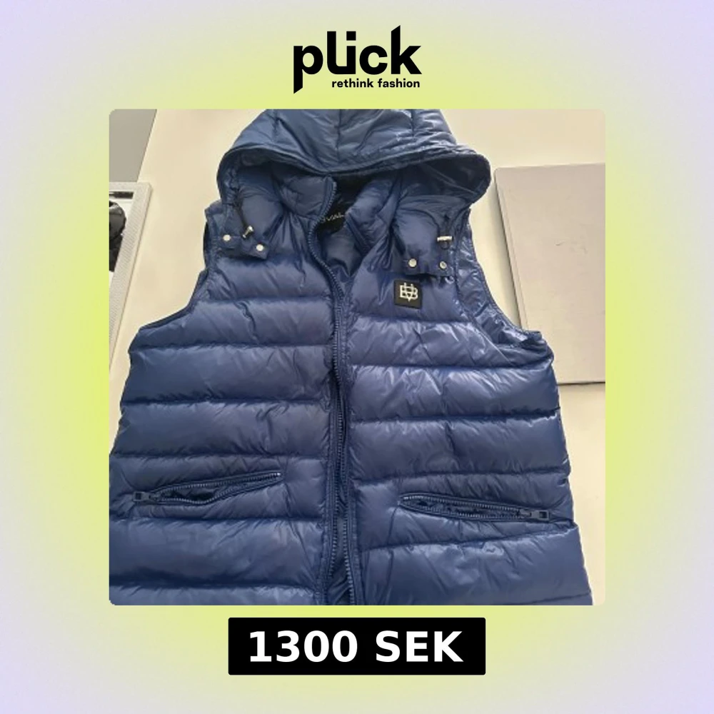 Snygg blå dunväst från BVALDI med quiltad design och avtagbar huva. Västen har två dragkedjefickor framtill och en svart logotyp-patch på bröstet. Perfekt för lager-på-lager och chill stil under höst och vinter.den är helt ny om du är intresserad är det bara att skriva