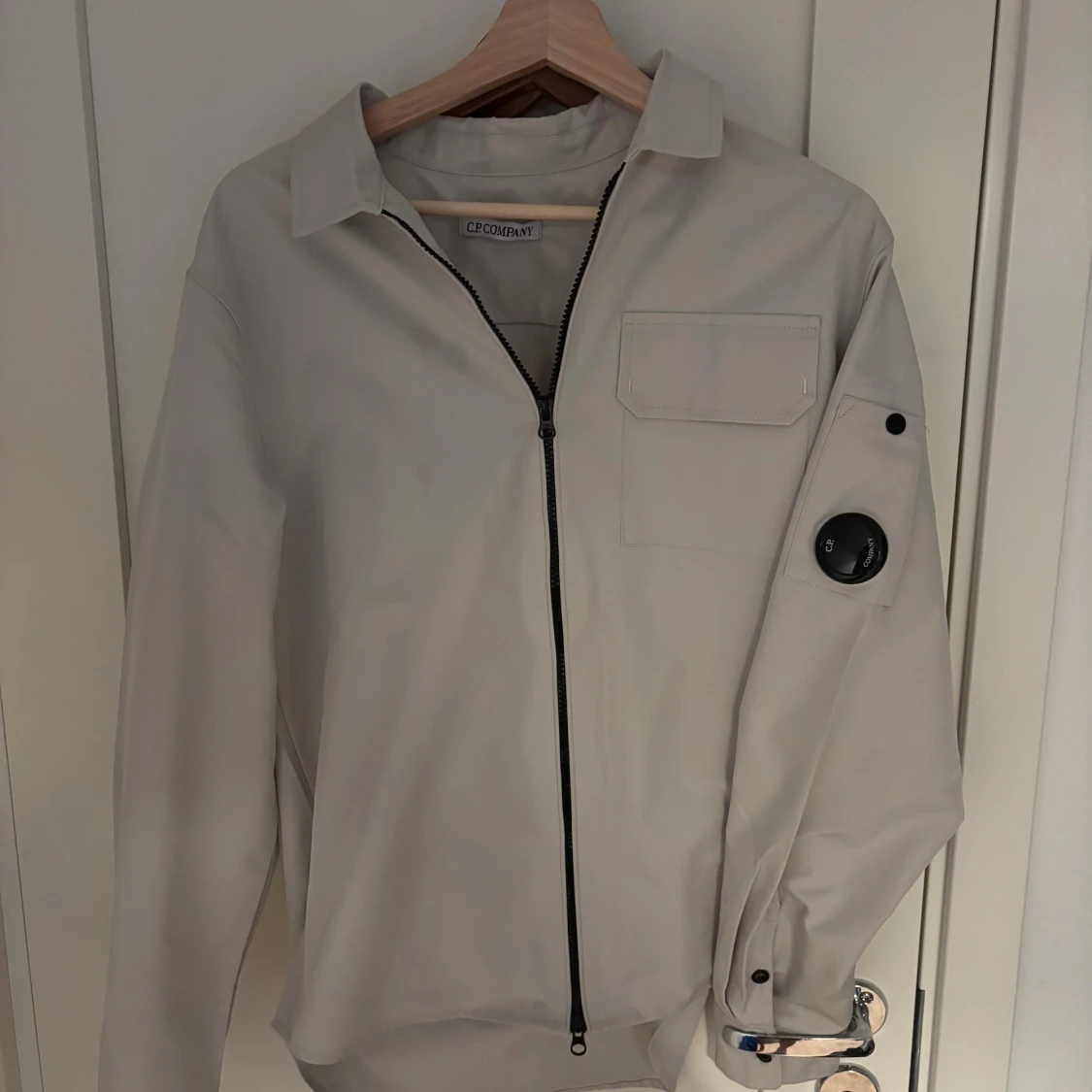 Stilren beige overshirt från C.P. Company med svart dragkedja, bröstficka och den ikoniska linsen på ärmen. Perfekt för lager-på-lager och modern streetstyle. Storlek M i mycket bra skick då den inte kommit jätte mycket till användning. Bara att skriva vid funderingar!!