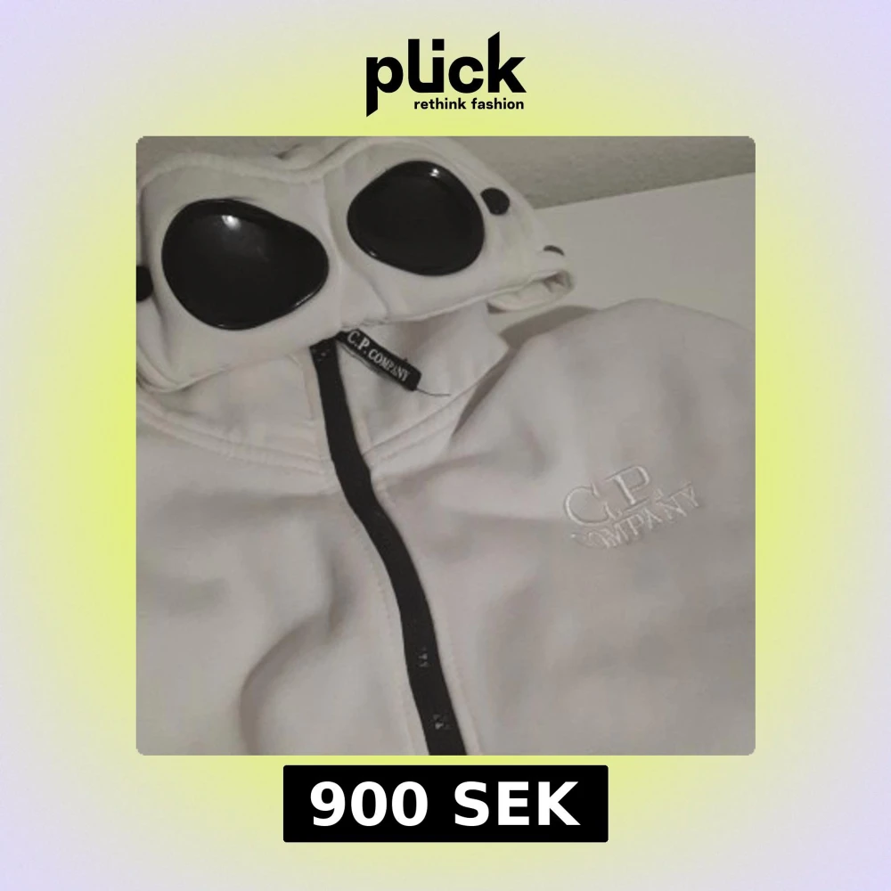 Säljer en vit gogglejacka från C.P. Company med ikoniska svarta glasögon i huvan och broderad logga på bröstet. Jackan har hel dragkedja framtill och är tillverkad i mjukt material. Perfekt för dig som vill sticka ut med en unik och stilren look.