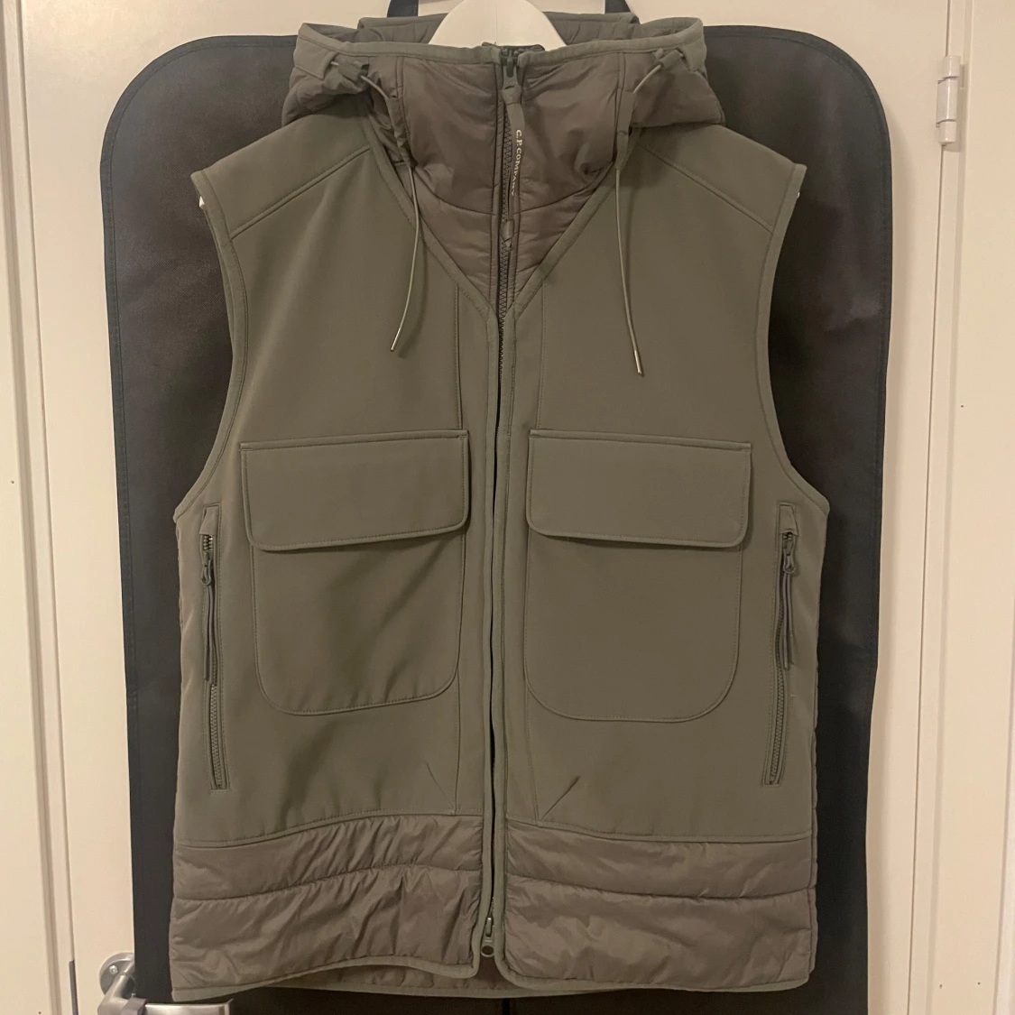 Snygg väst från C.P. Company med huva. Västen är i storlek 50 vilket motsvarar M passar även L då det är vad jag har nu. Inköpt våren 2023 från care of Carl för 3699. Taggar finns kvar.Mycket sparsamt andvänd. Kan fraktas men jag står inte för frakten pris ej hugget i sten