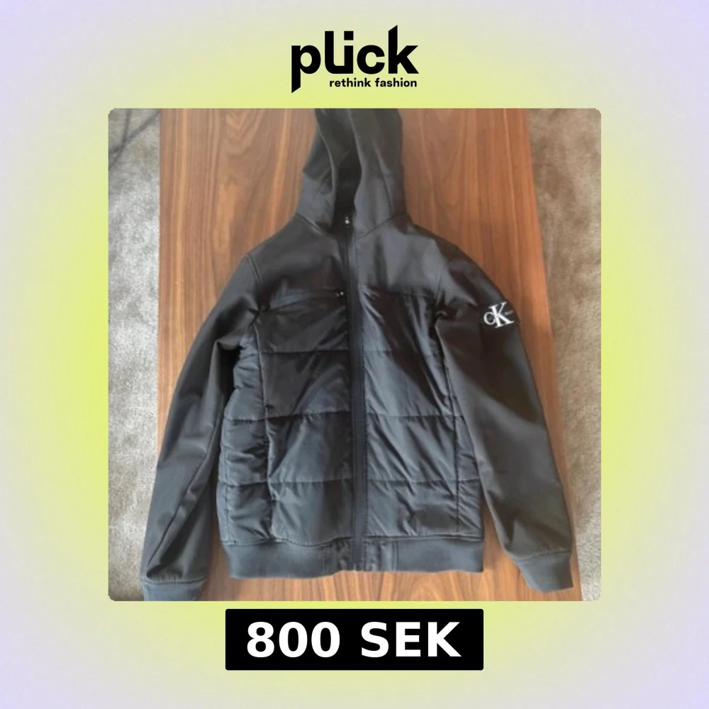 Svart jacka från Calvin Klein Jeans med huva och dragkedja framtill. Jackan har quiltade paneler, ribbade muddar och CK-logga på ärmen. Insidan är fodrad med blankt material och har Calvin Klein Jeans-tryck. Perfekt för dig som gillar stilren streetwear. Sitter som storlek S. Inget tecken på användning.