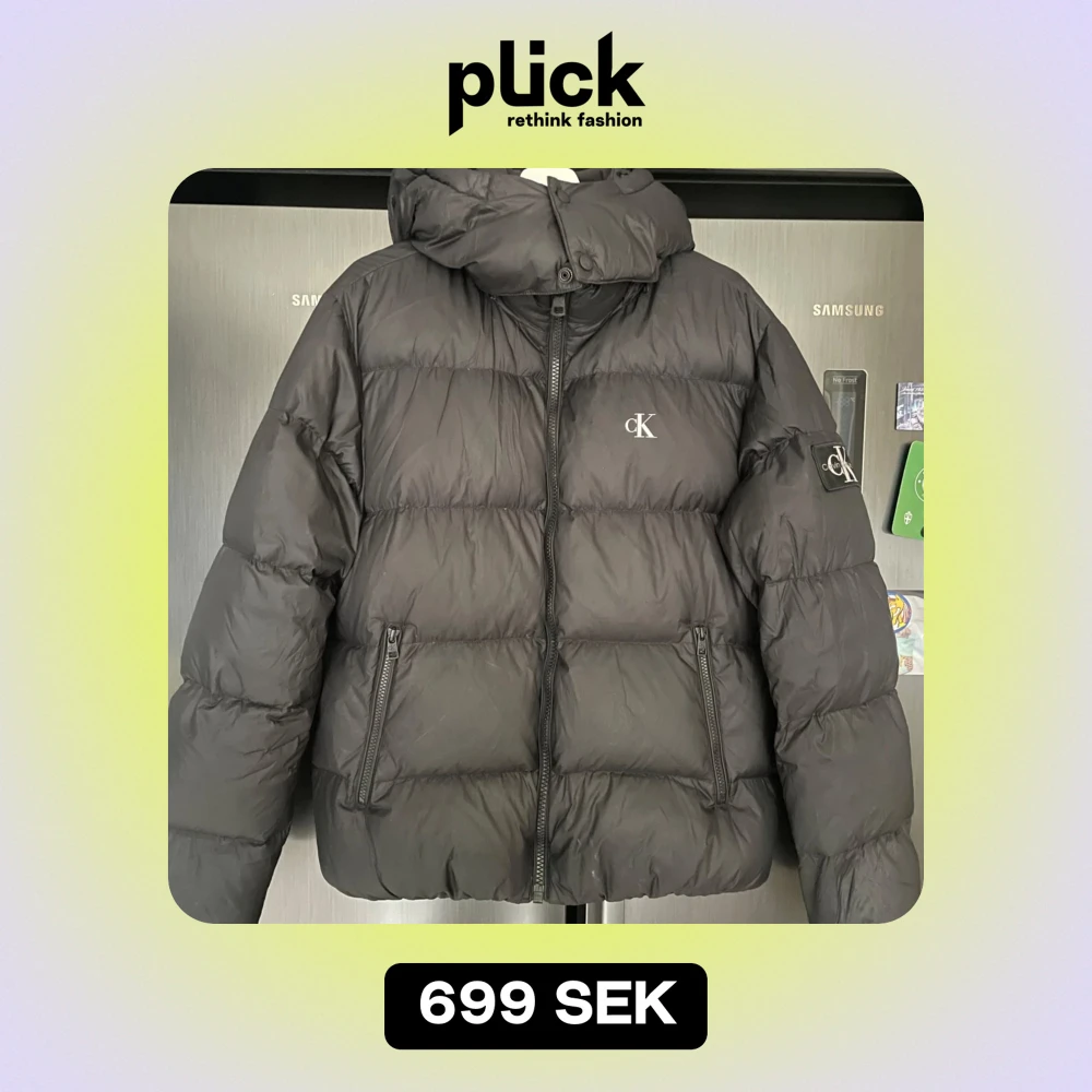 En svart Calvin Klein använd förra vintern. Mycket bra skick, endast en rispa i tyget på ena ärmen, syns på sista bilden. En varm och snygg jacka!