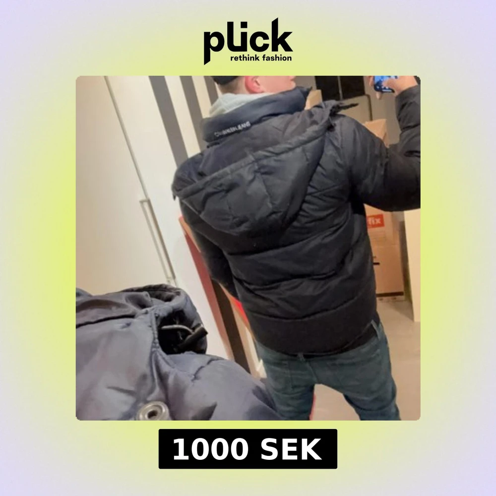 Säljer en mörkblå pufferjacka från Calvin Klein med huva och dragkedja framtill. Jackan har en clean look med quiltade sektioner och långärmad passform. Perfekt för dig som vill ha en varm och snygg jacka med streetkänsla.