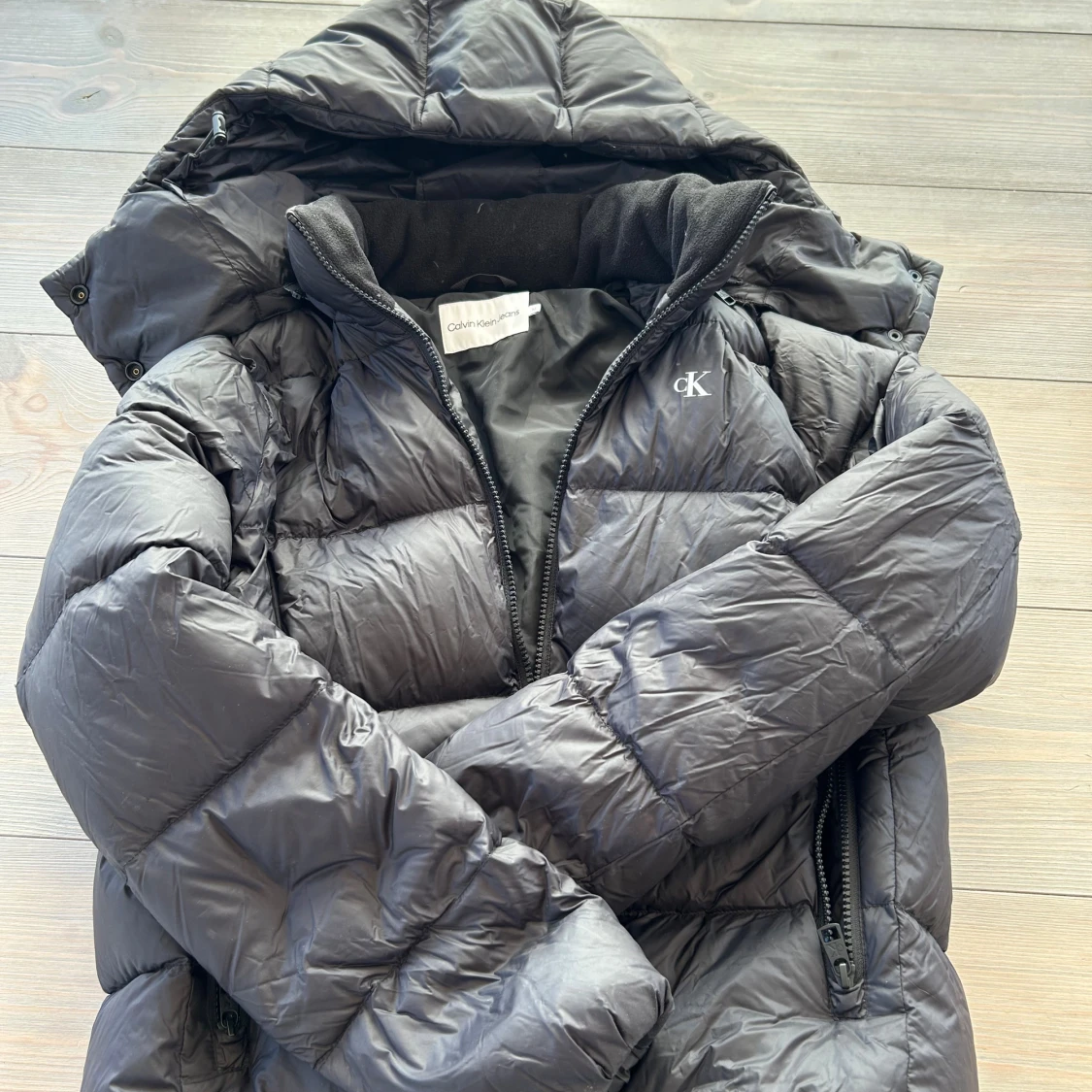 Svart pufferjacka från Calvin Klein Jeans med huva och dragkedja. Jackan har quiltad design, diskret CK-logga på bröstet och är vadderad för extra värme. Perfekt för kalla dagar och har en klassisk, stilren look.