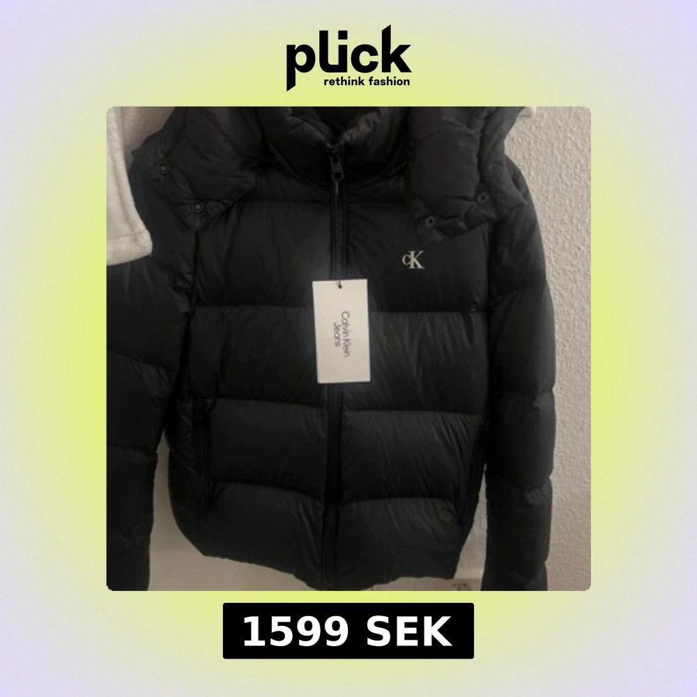 Svart pufferjacka från Calvin Klein Jeans i st S. Yttermaterialet är återvunnen nylon och fodret är återvunnen polyester med dunfyllning. Helt ny oanvänd med lappen på