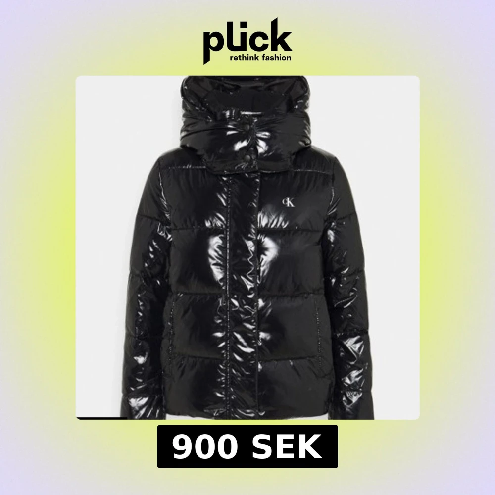 Snygg svart pufferjacka från Calvin Klein med glansig finish och logotyp på bröstet. Jackan har en hög krage och långa ärmar, perfekt för kyliga dagar. Den är både stilren och funktionell.