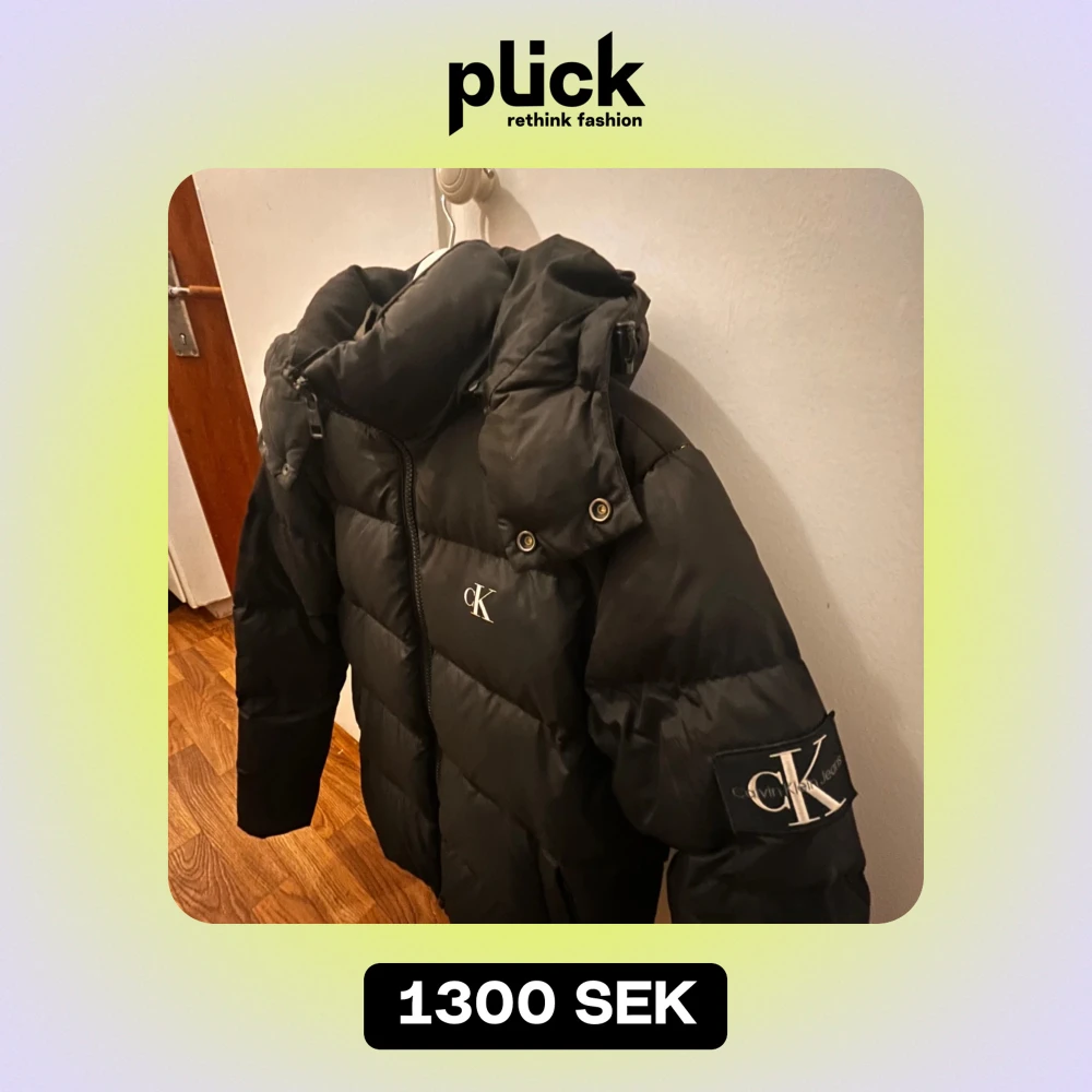 Säljer en snygg svart dunjacka från Calvin Klein i mycket bra skick. Jackan har en hög krage och dragkedja framtill. Perfekt för kalla vinterdagar med sin varma och vattenavvisande design. Den har CK-logga på bröstet och ärmen. Passar perfekt för både vardag och festliga tillfällen.