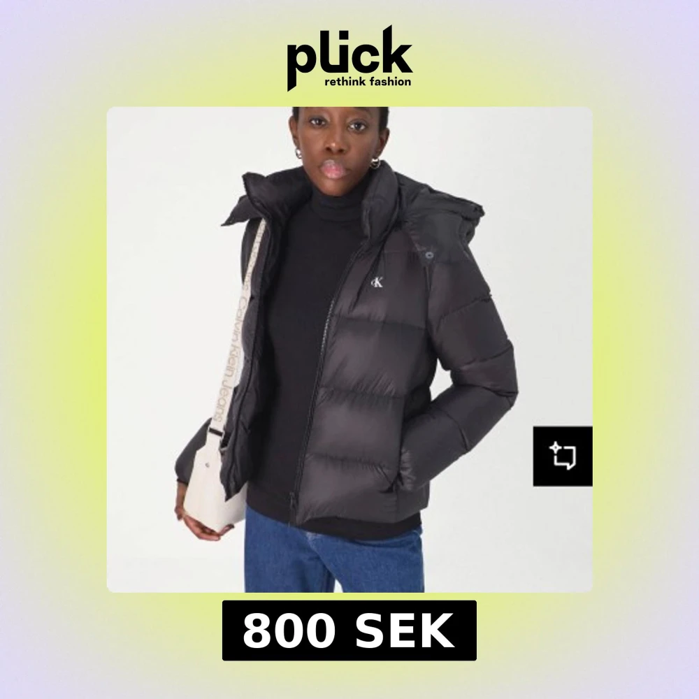 Snygg svart dunjacka från Calvin Klein med dragkedja och huva. Jackan har en pufferdesign och är perfekt för kyligare väder änvänt minst en månad inte min still längre