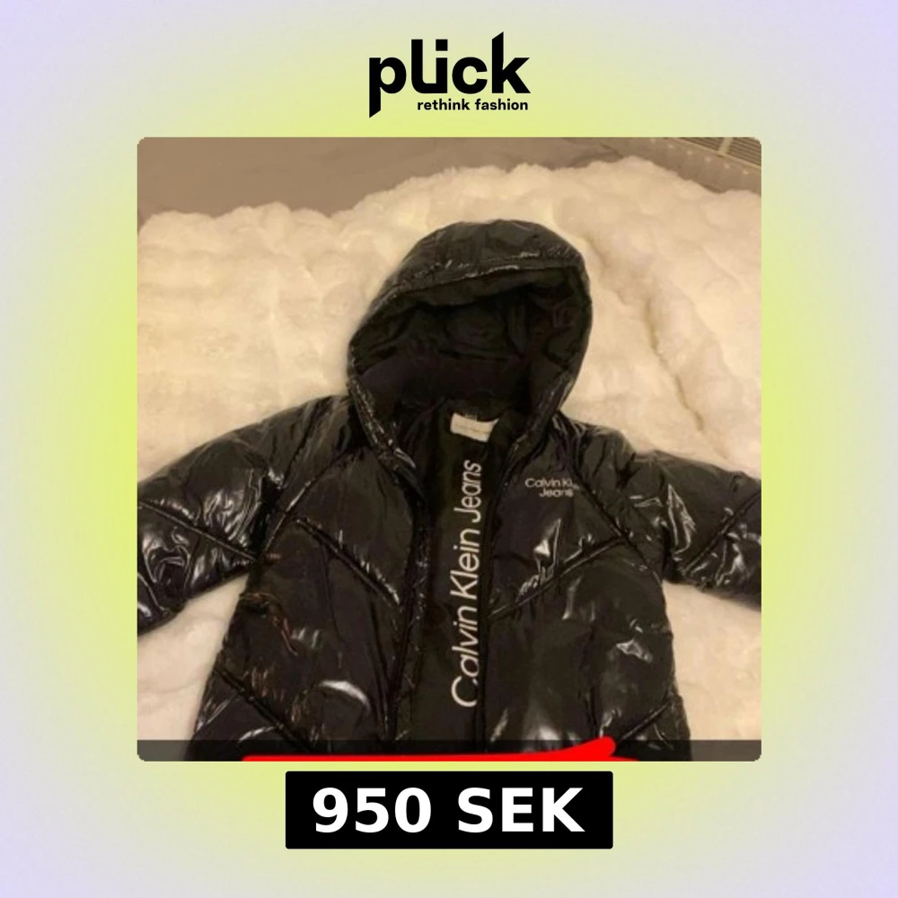 Säljer en svart, glansig pufferjacka från Calvin Klein med luva och vit logotyp på bröstet och insidan. Jackan har lång ärm och dragkedja framtill. Perfekt för dig som vill ha en snygg och varm jacka. Skriv till mig för mer bilder.