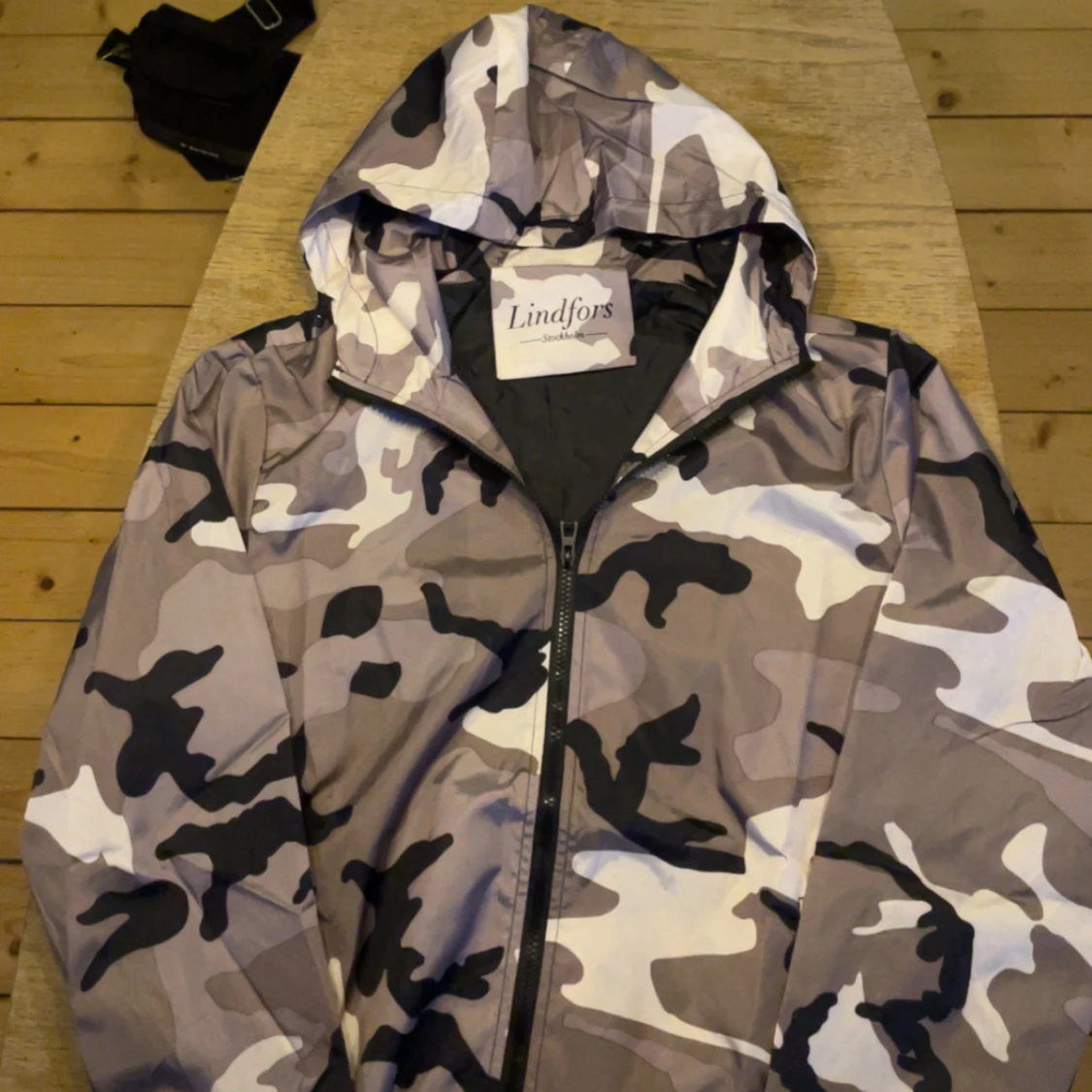 Utförsäljning!!’ Säljer en snygg vind/höstjacka från Lindfors i mörk camouflage med dragkedja och huva. Perfekt för de kyligare vädret nu efter sommaren, har alla storlekar från xs,s,m,L samt att jackorna är helt nya och inplastade för 229kr✅