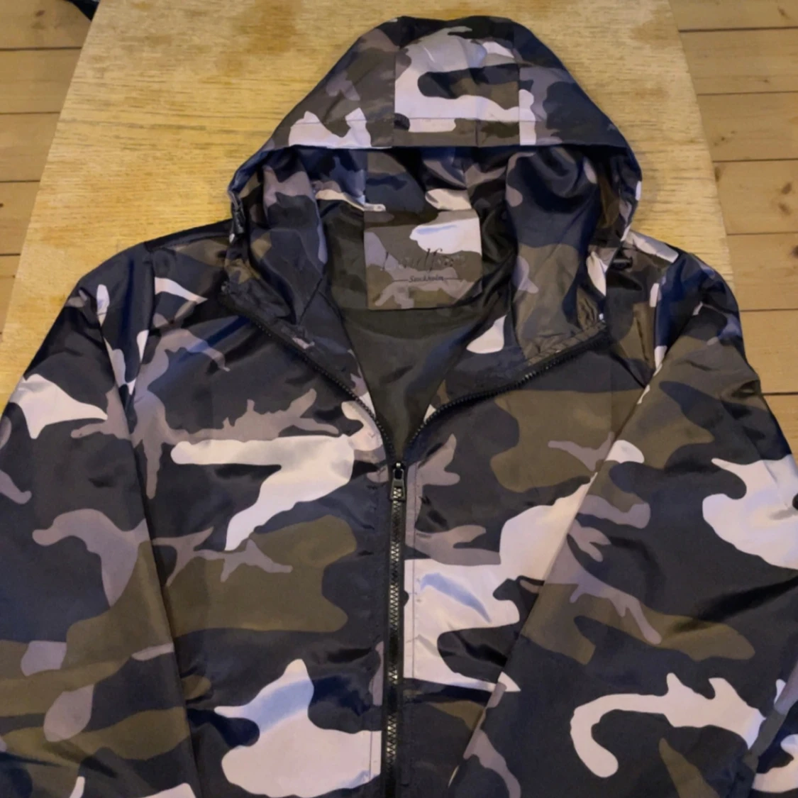 Utförsäljning!!’ Säljer en snygg vind/höstjacka från Lindfors i mörk camouflage med dragkedja och huva. Perfekt för de kyligare vädret nu efter sommaren, har alla storlekar från xs,s,m,L samt att jackorna är helt nya och inplastade för 199 kr✅