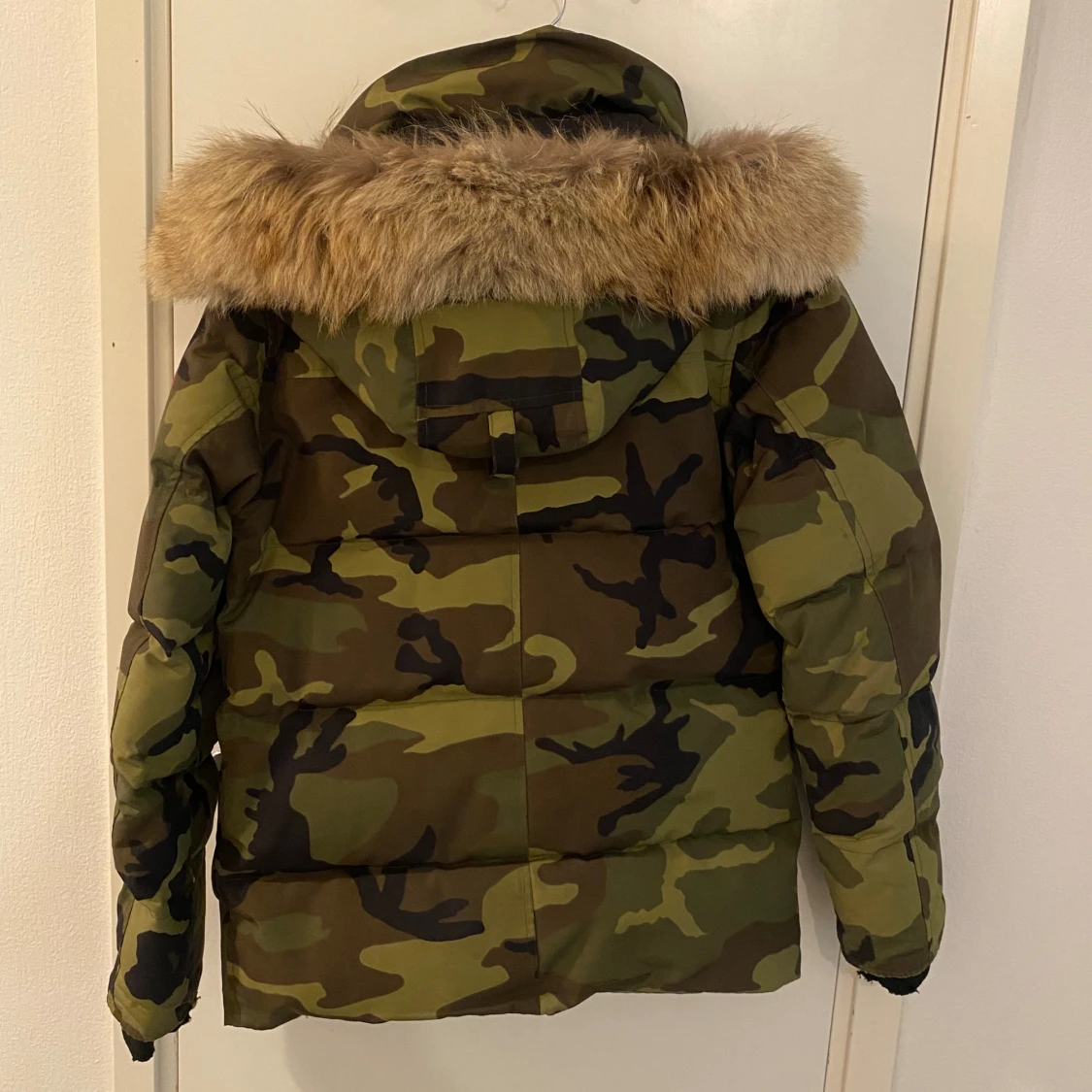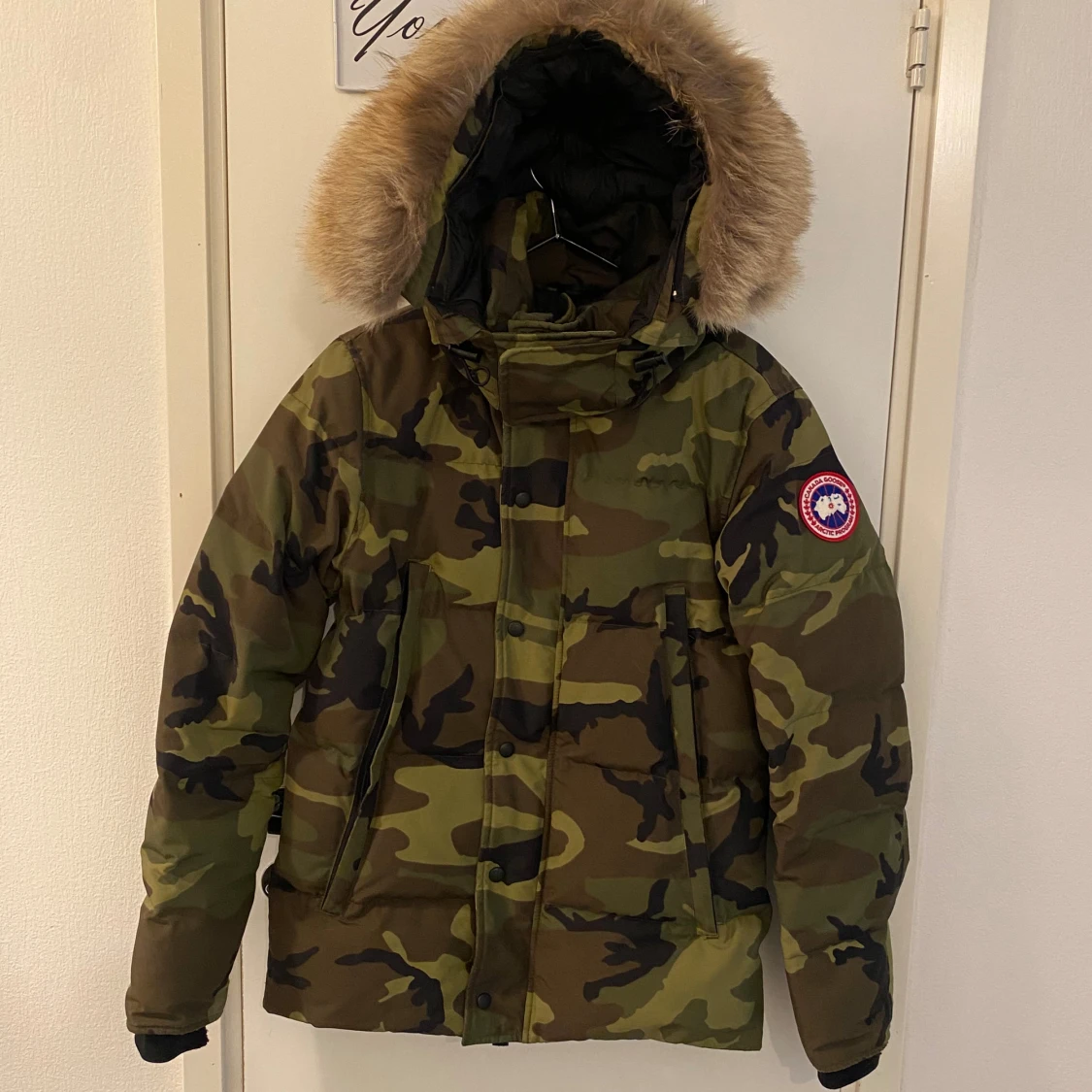 Säljer en fet camouflagefärgad dunjacka från Canada Goose med stor huva och fluffig pälsdetalj. Jackan har flera fickor, dragkedja och knappar framtill samt klassisk patch på ärmen. Perfekt för kalla vinterdagar när du vill sticka ut. Sådan finns inte längre som ny. Det kan finnas utan päls och den ligger runt 22 tusen. Storlek Är XS men kan passa S också. Den är köpt från Johnells via klarna