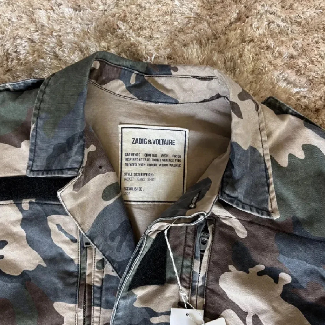 Snygg camouflagejacka från Zadig & Voltaire med klassisk krage, stora fickor framtill och dragkedja. Jackan är i bomull och har en loose passform, perfekt för dig som gillar streetstyle. Färgerna går i grönt, beige och brunt. Den är i storlek S men sitter mer som en M