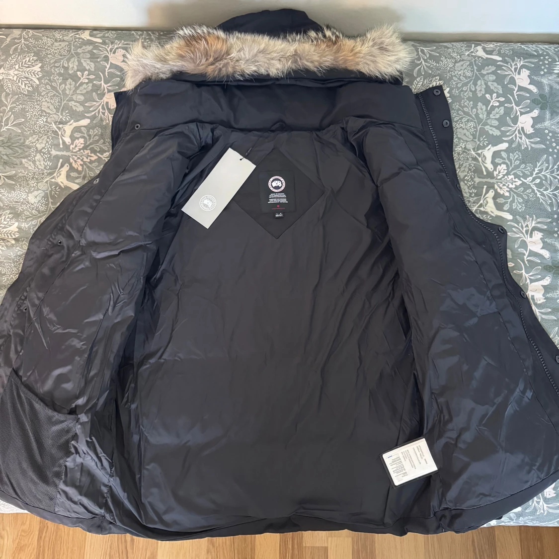 Säljer min canada goose jacka som aldrig använt på grund av den var för stor, lapparna finns med och Qr koden funkar (det är en av en) och påsen är med som ni ser på bilden. Väldigt hög kvalitet
