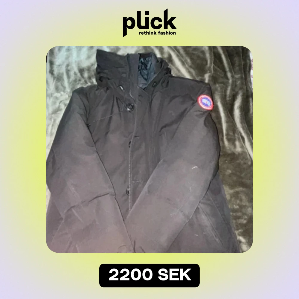 Säljer en svart dunjacka från Canada Goose i storlek L. Jackan är perfekt för kalla vinterdagar och har en snygg broderad logga på ärmen. Den är långärmad och har både dragkedja och knappar för extra skydd mot kylan. Insidan är quiltad för extra värme och komfort. Passar perfekt för vinterns alla äventyr!