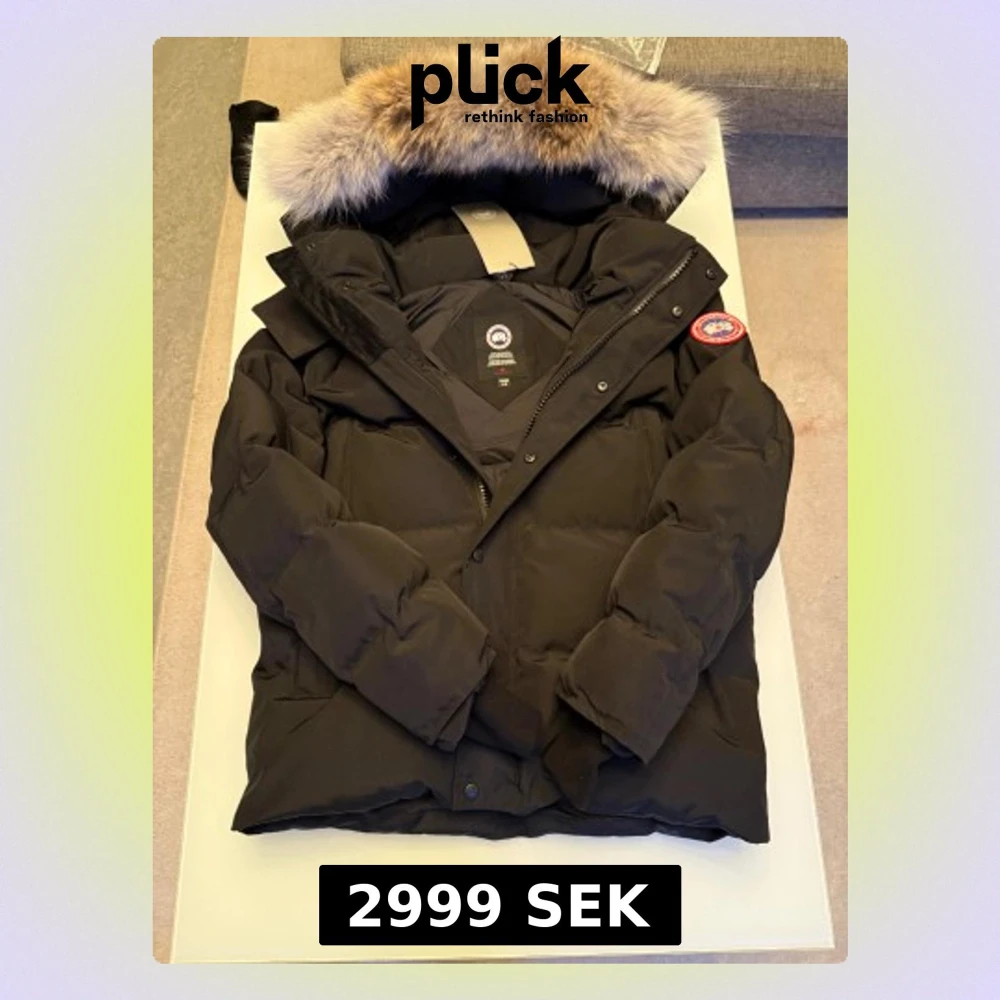 Svart Wyndham Parka från Canada Goose med äkta päls på huvan, ikonisk röd och vit logotyp på ärmen och kraftig dunfyllning. Jackan har dragkedja och knappar framtill, långa ärmar och flera praktiska fickor. Perfekt för kalla vinterdagar.