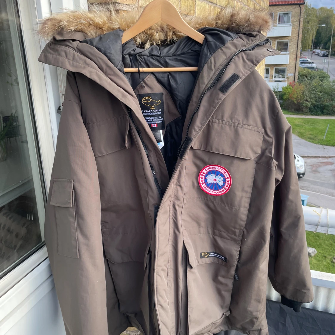 Säljer en brun Canada Goose dunjacka med stor huva och avtagbar pälskant. Nypris 17000 kr. Jackan är äkta