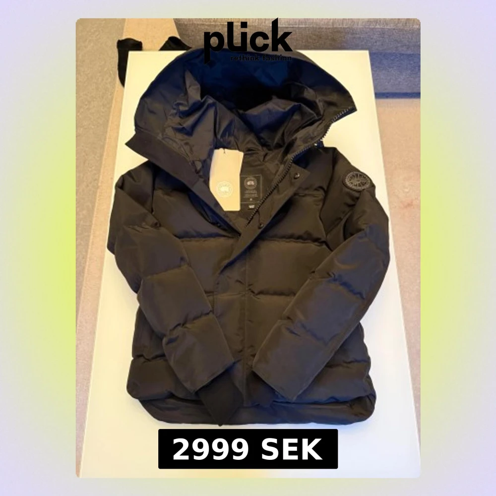 Svart pufferjacka från Canada Goose i storlek M. Jackan har en stor huva, quiltad design och logotyp-patch på ärmen. Materialet är polyester och dun, perfekt för kalla dagar. Stängs med dragkedja och tryckknappar framtill. Snygg och funktionell för vintern.