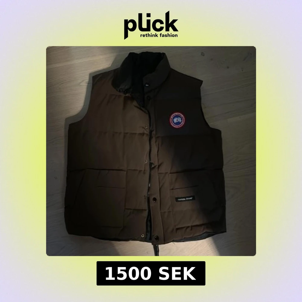 Säljer en brun dunväst från Canada Goose med knappar och dragkedja. Köpte för 6499 säljer för 1500 kan gå ner ett par hundra så bara fråga på 😃😃