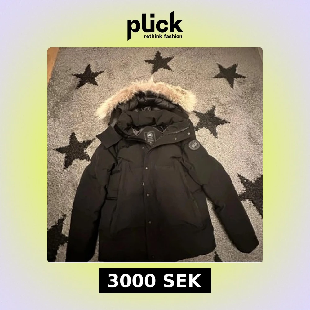 Säljer en svart dunjacka från Canada Goose med stor huva och avtagbar päls. Jackan har klassisk patch på ärmen, dragkedja och knappar framtill samt flera fickor. Perfekt för kalla vinterdagar och riktigt snygg streetstil.