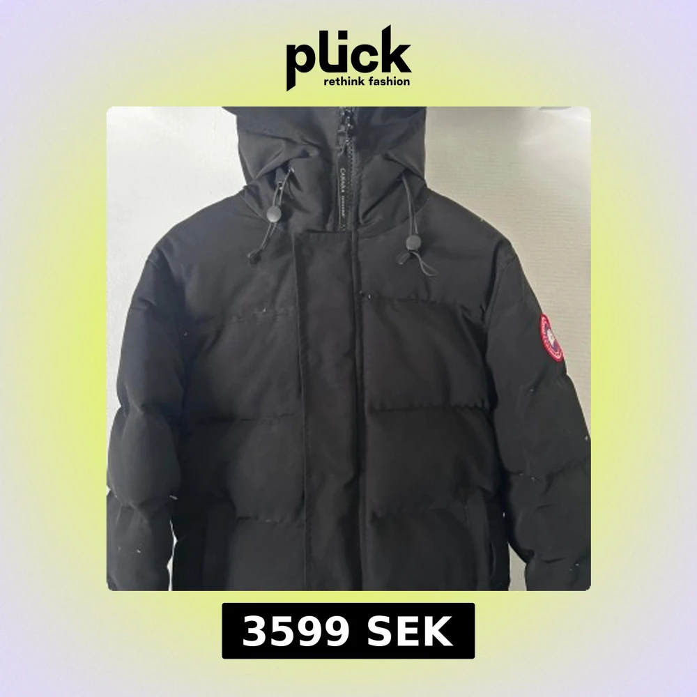 Säljer en svart dunjacka från Canada Goose i storlek M. Jackan har huva, dragkedja framtill och klassisk Canada Goose-logga på ärmen. Självklart ingår original påse! NYPRIS:15000kr , MITT PRIS:2949
