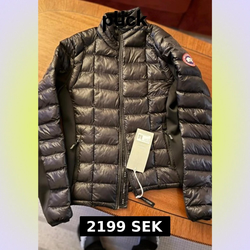 Snygg svart dunjacka från Canada Goose med quiltad design och hög krage. Jackan har dragkedja framtill, två sidofickor med dragkedja och ett klassiskt Canada Goose-märke på ärmen. Materialet är glansigt och jackan har en slim passform.