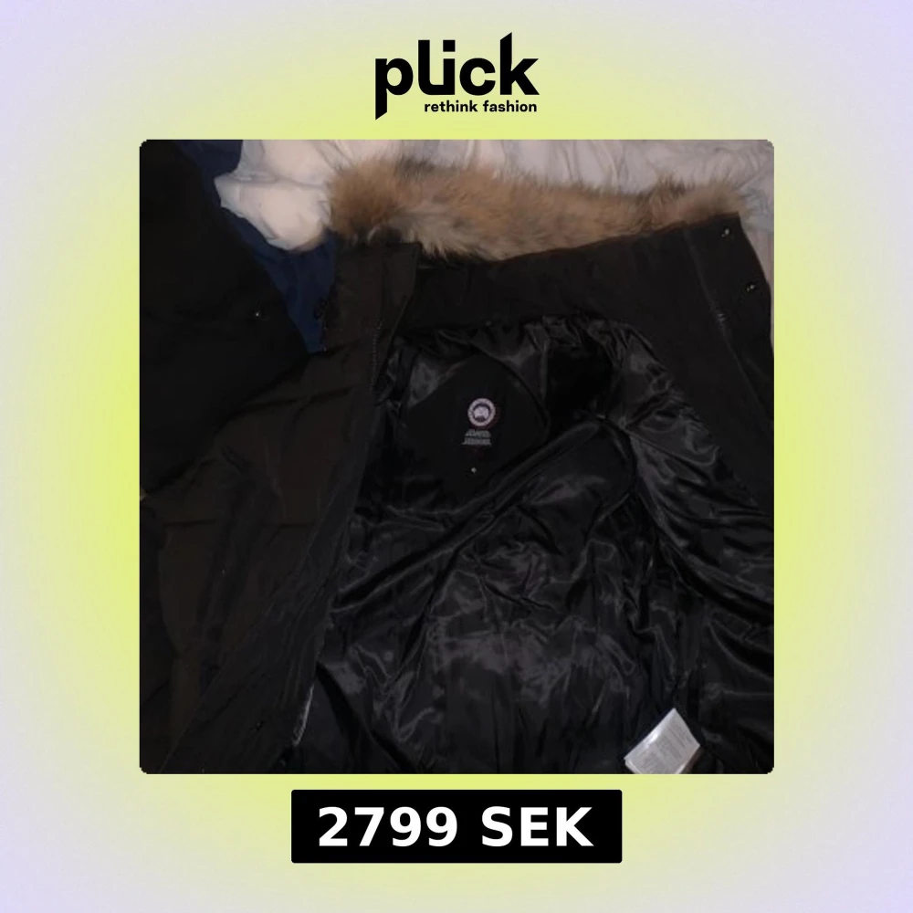 Säljer en svart dunjacka från Canada Goose med klassisk patch på ärmen och stor huva med äkta päls. Jackan har dragkedja, flera fickor och är perfekt för kalla dagar. Insidan är fodrad i blankt tyg och jackan har en riktigt schysst vinterlook.