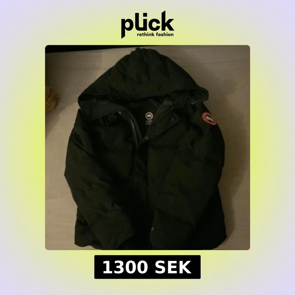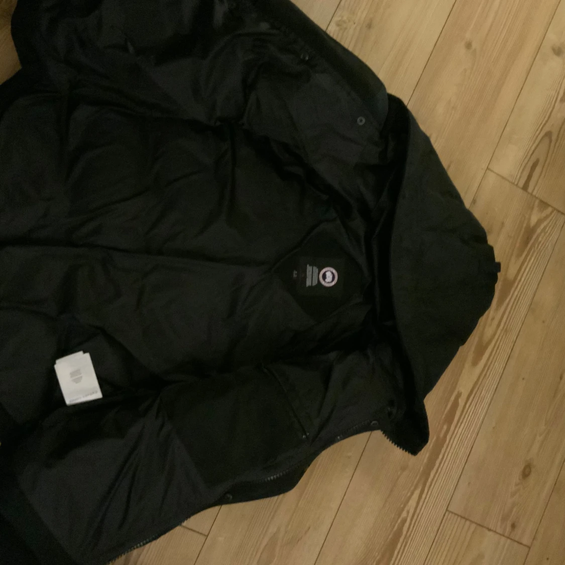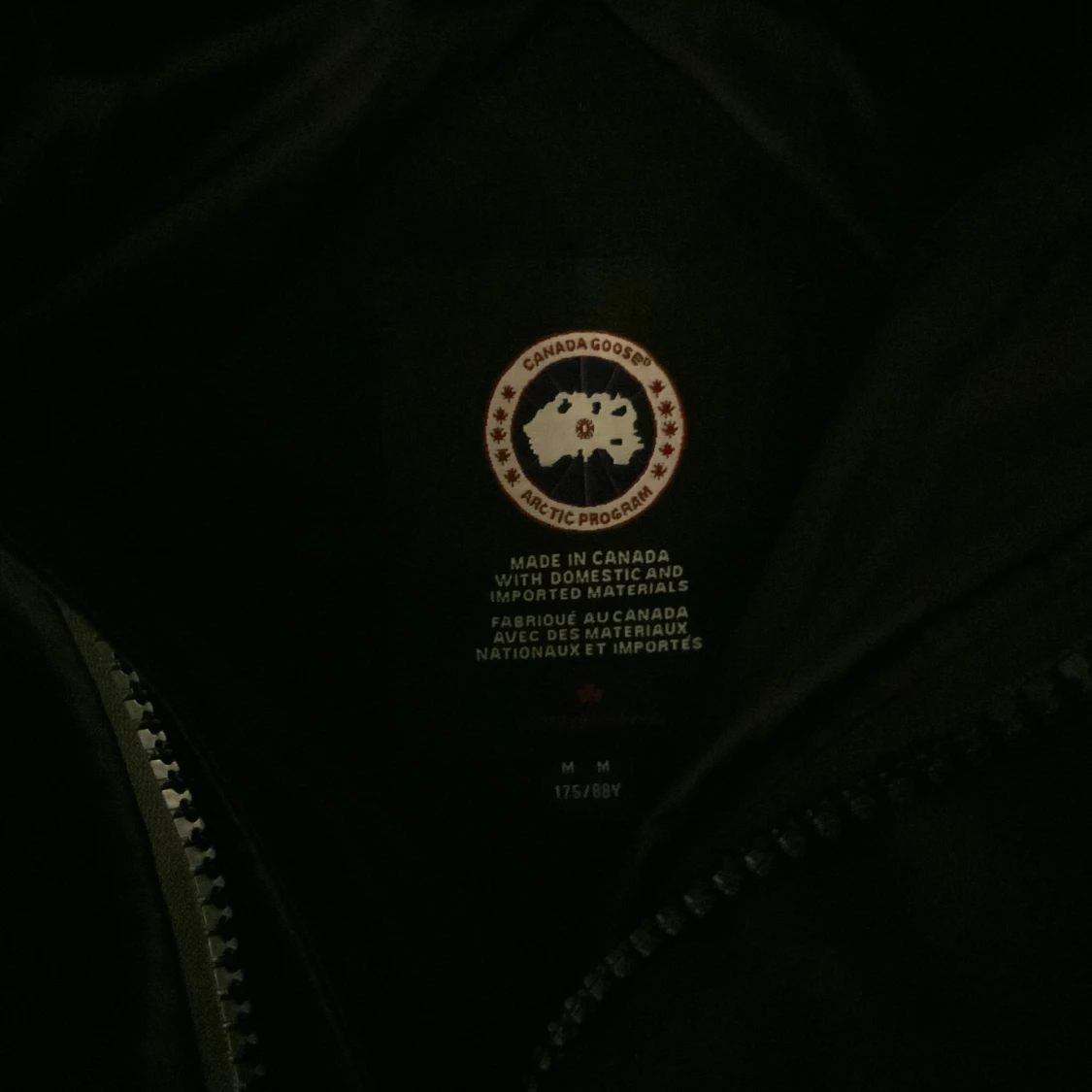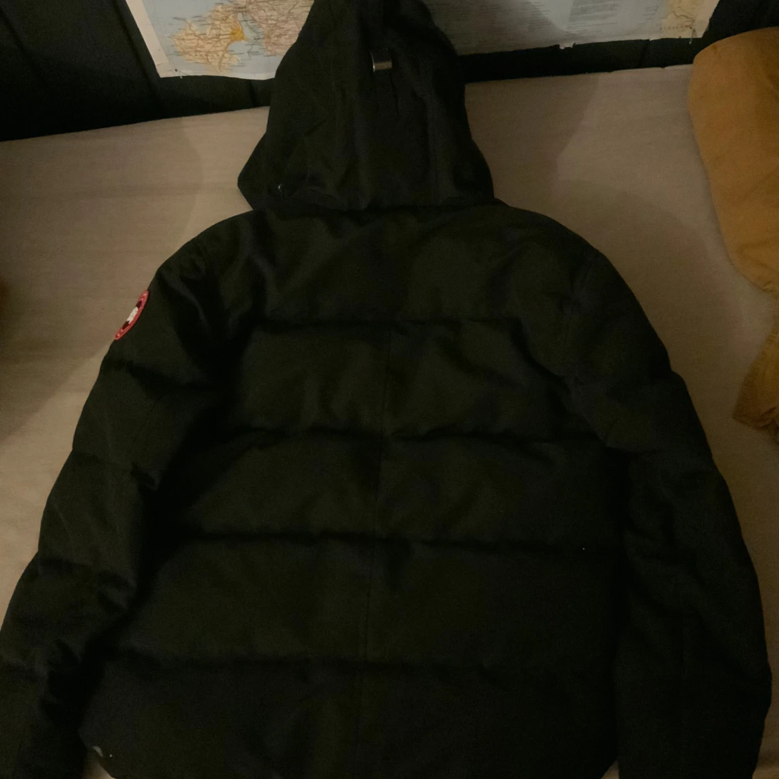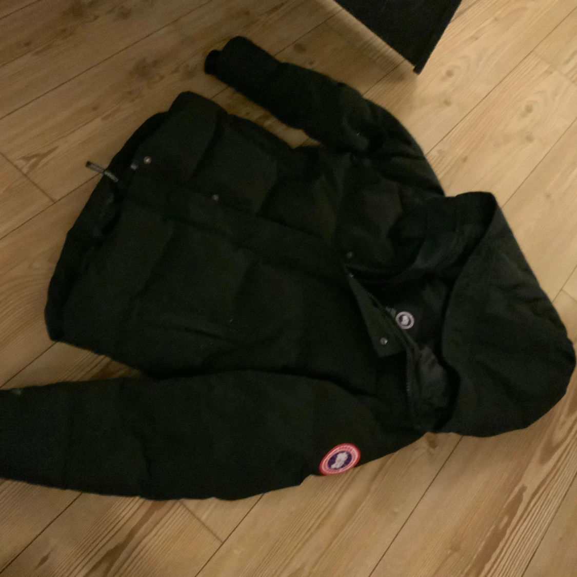 Säljer en svart dunjacka från Canada Goose i storlek M. Jackan har huva, dragkedja och klassisk patch på ärmen. Perfekt för kalla dagar med sin puffiga look och stilrena design. Passar dig som vill ha både värme och streetstyle.