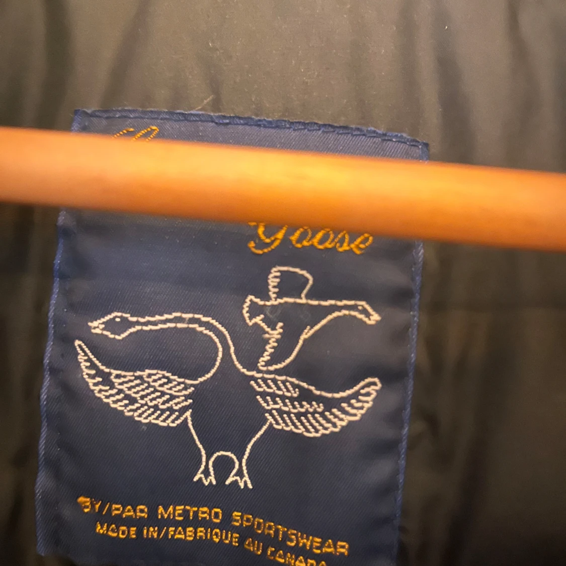 Säljer en beige dunväst från Canada Goose med dragkedja och knappar. Västen har två stora fickor framtill och en hög krage för extra värme. Perfekt för kyliga dagar!